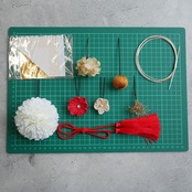 つまみ細工と大きめのマムやドライフラワー、水引を組み合わせたセットです。