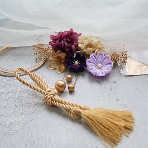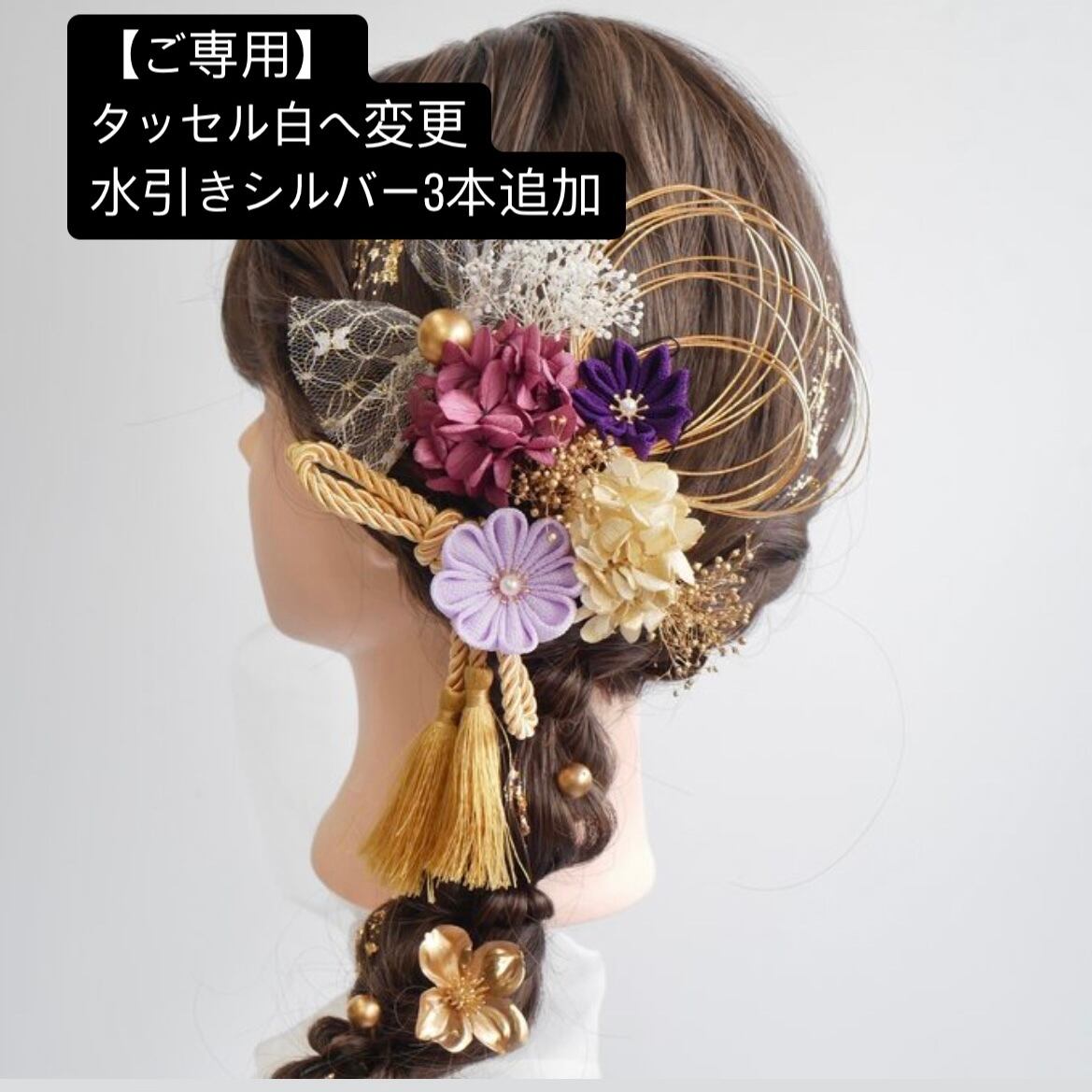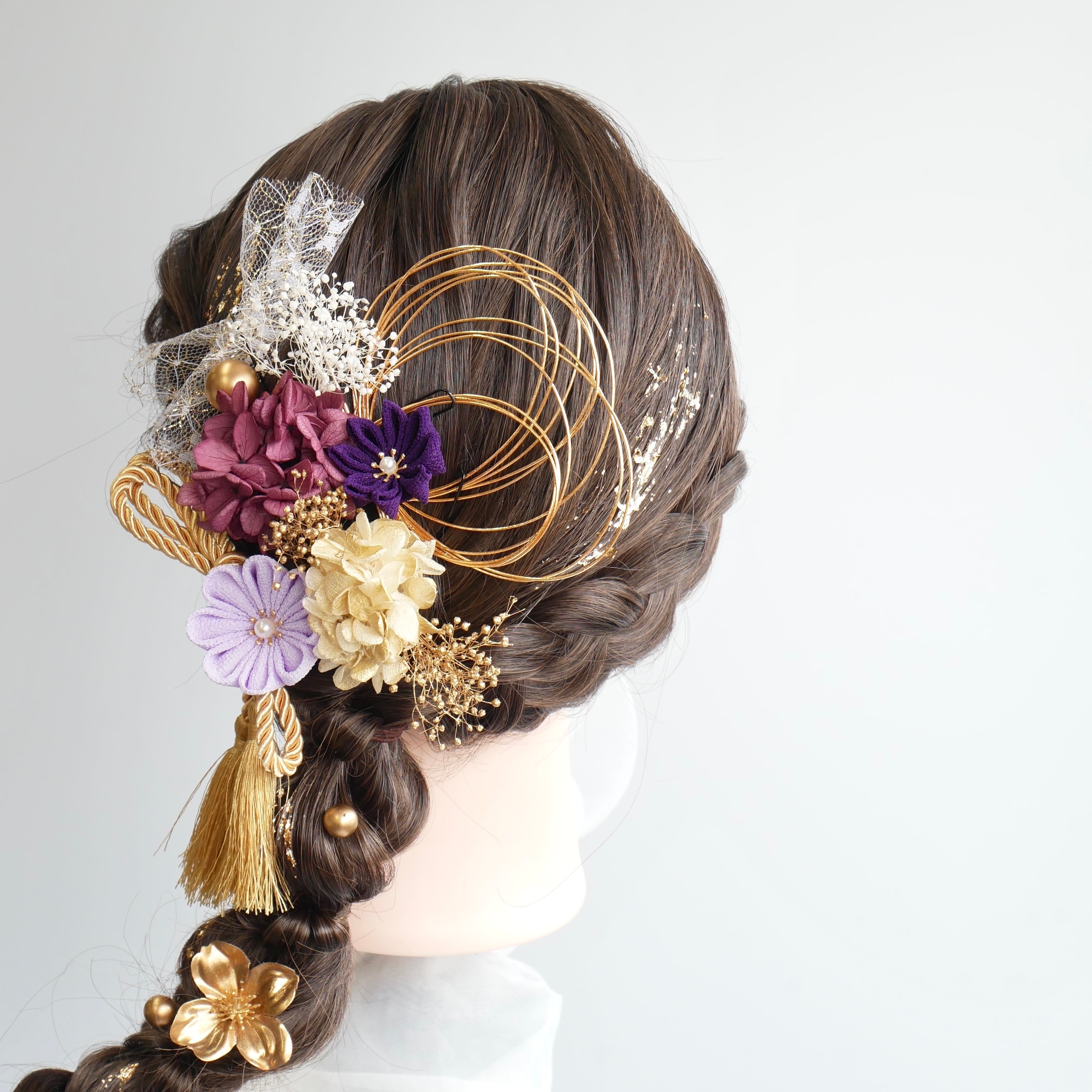 【ご専用 1点変更 水引き追加】N5 つまみ細工 髪飾り 紫 卒業式 袴 結婚式 ドライフラワー 成人式