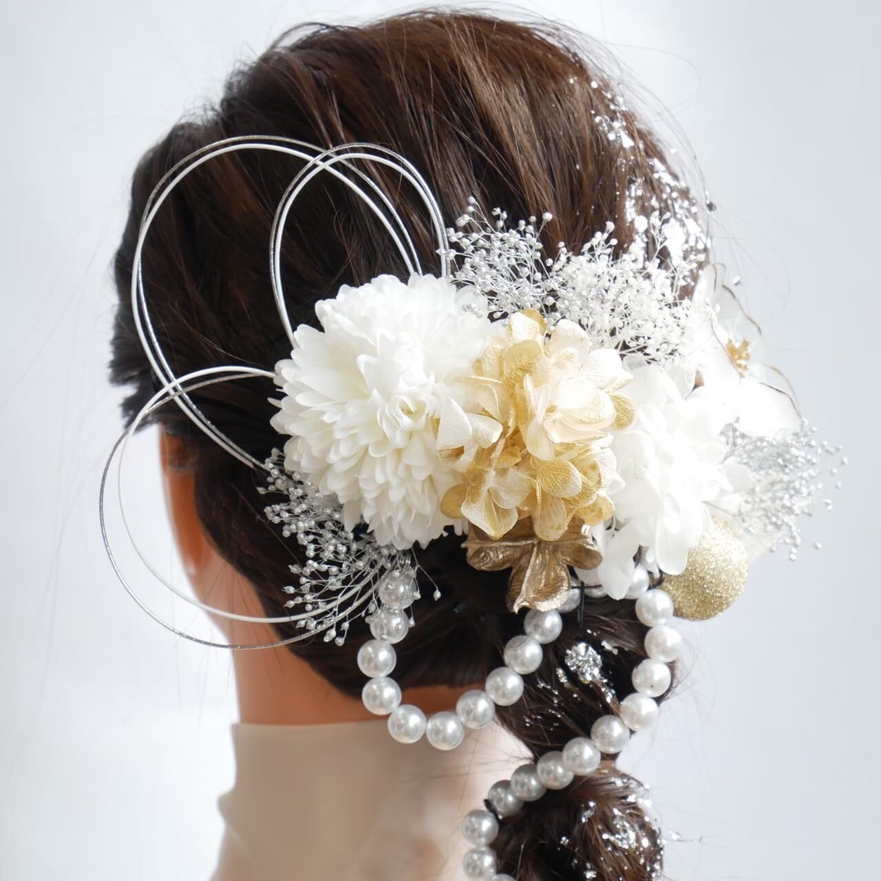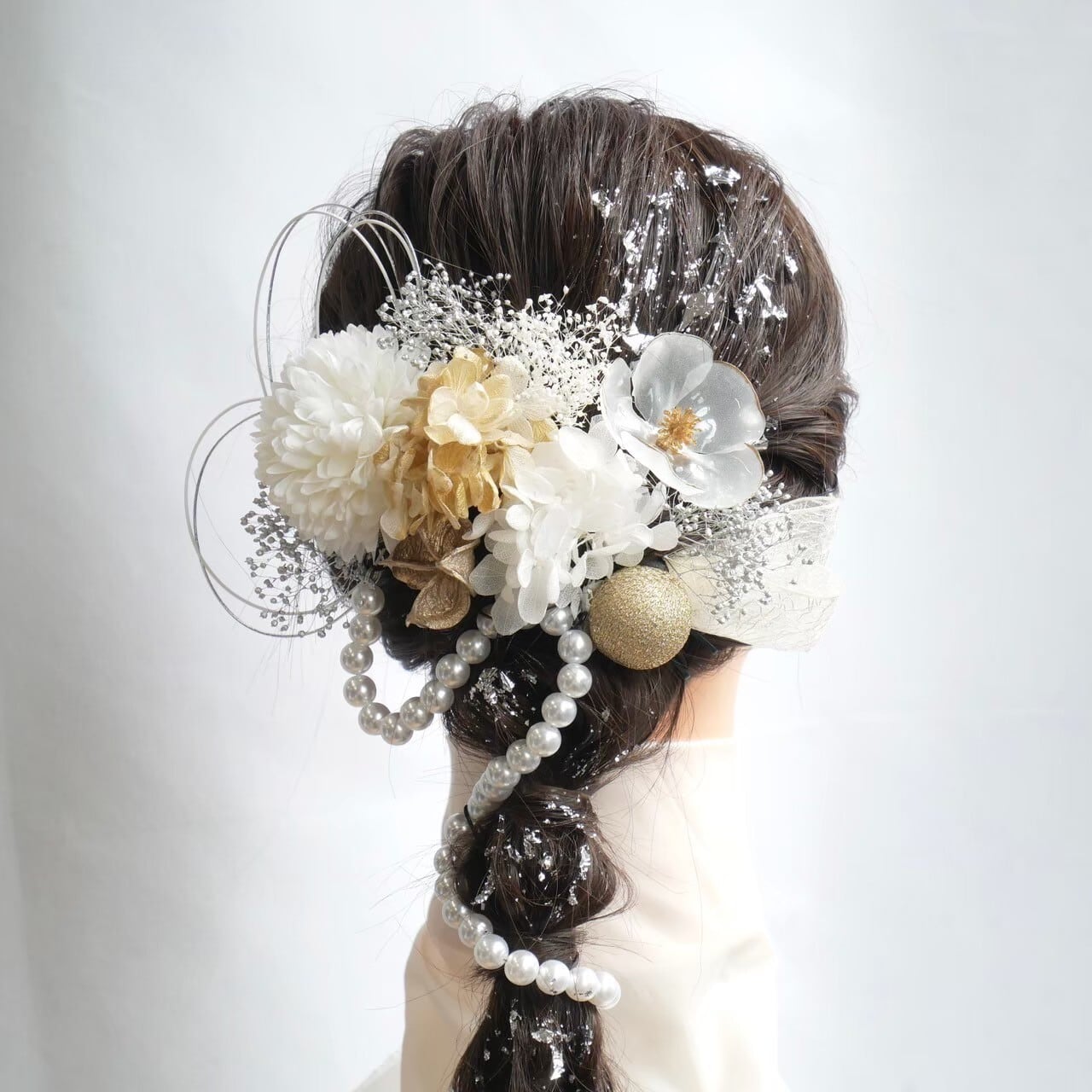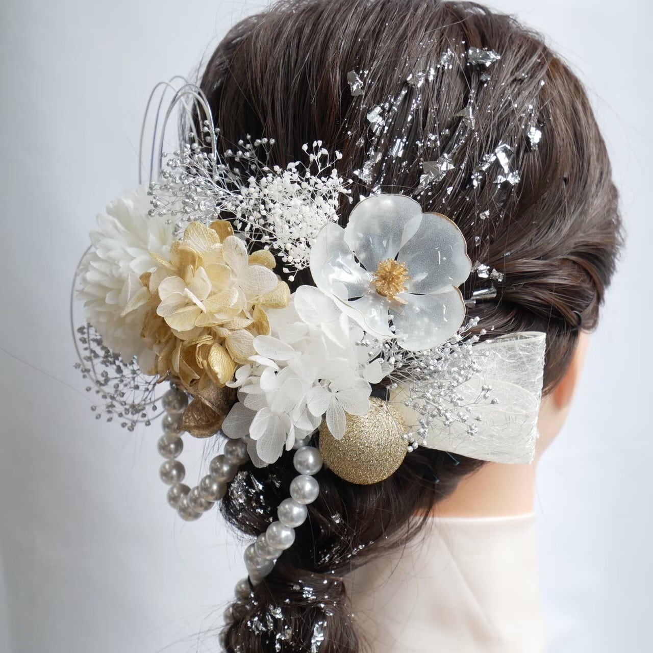 【ご専用】P25 パール髪飾り ドライフラワー 白 シルバー 成人式 振袖 結婚式 卒業式