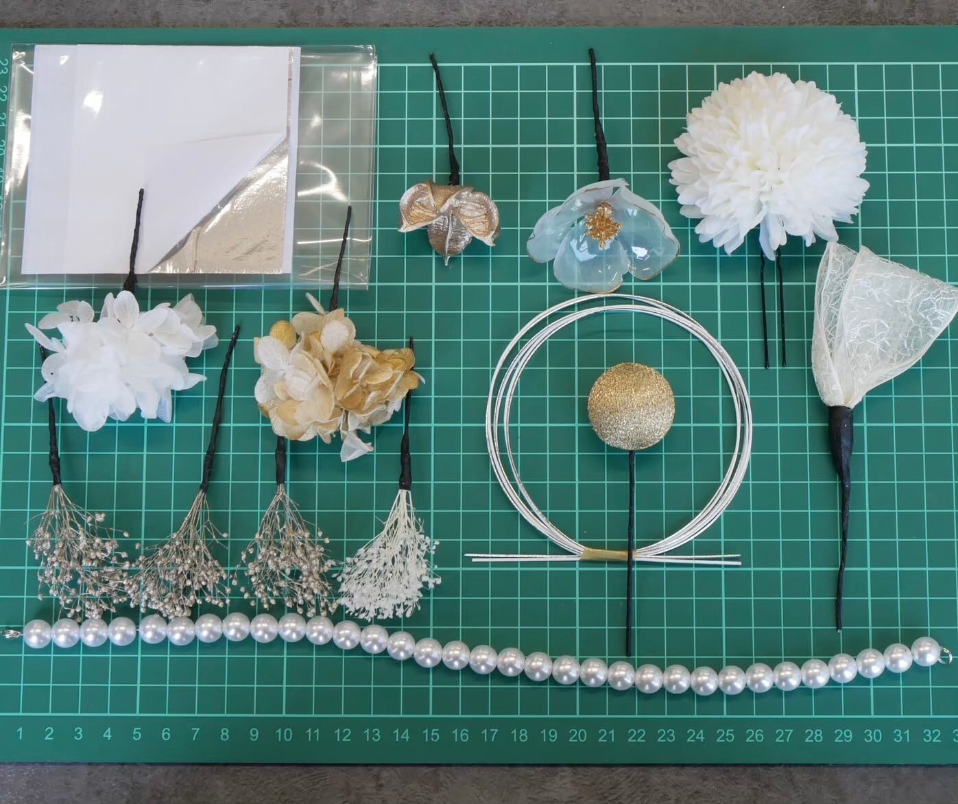 パールとドライフラワーを組み合わせた可憐な髪飾りのセットです。