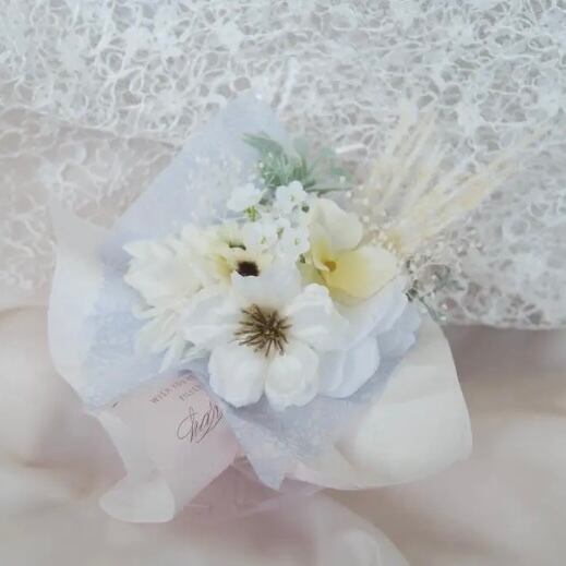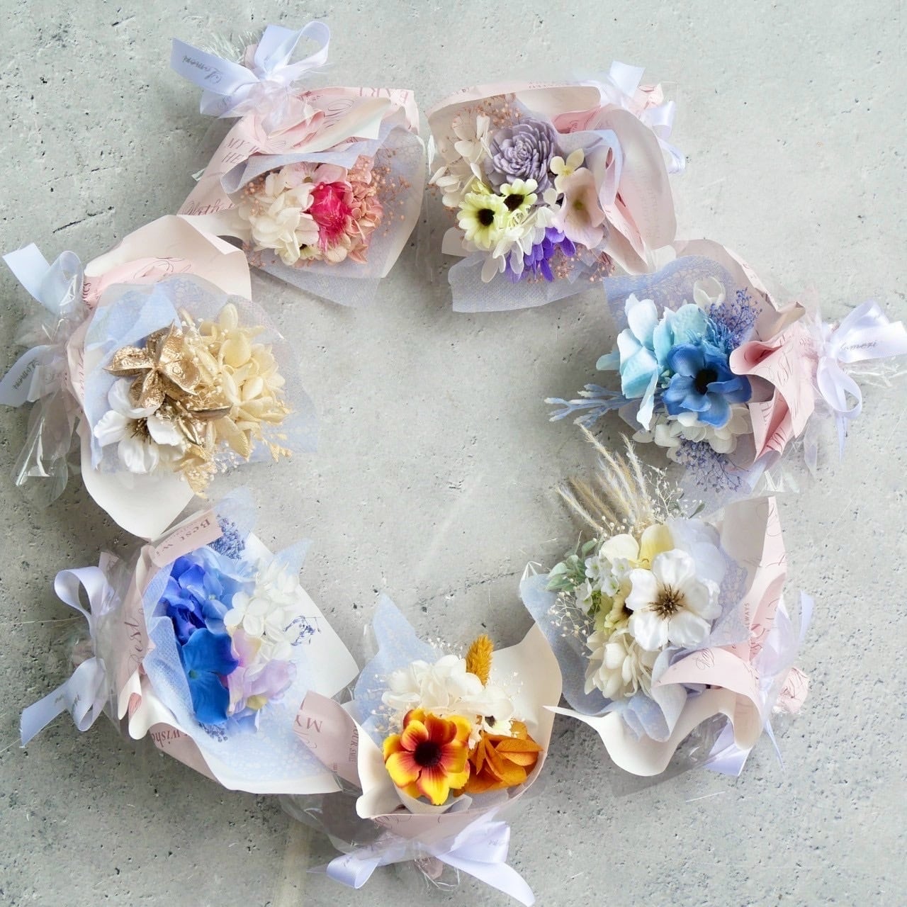 ドライフラワー(プリザーブドフラワー)は一度形が崩れてしまいますと元には戻りませんので、お取り扱いは優しくお願いいたします。