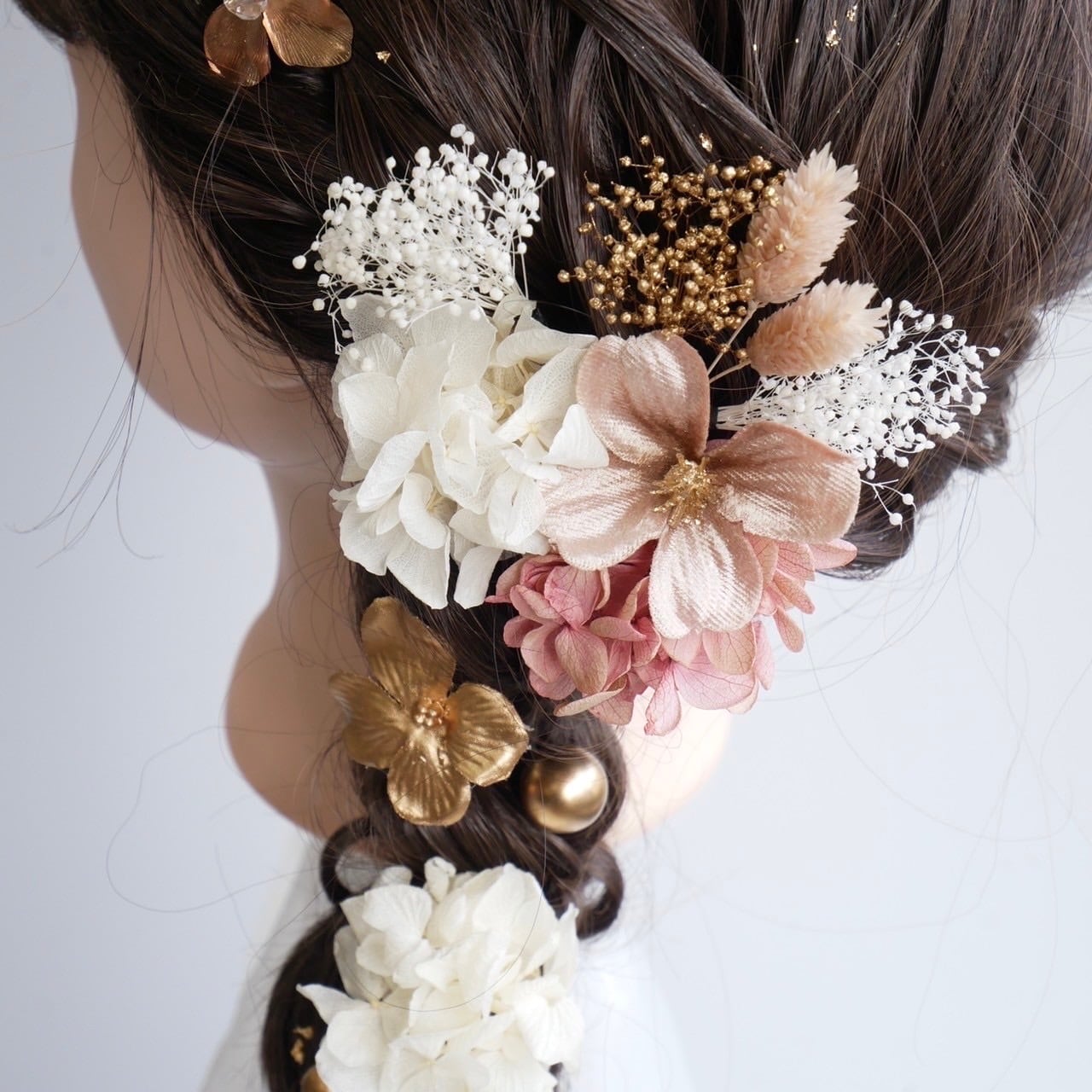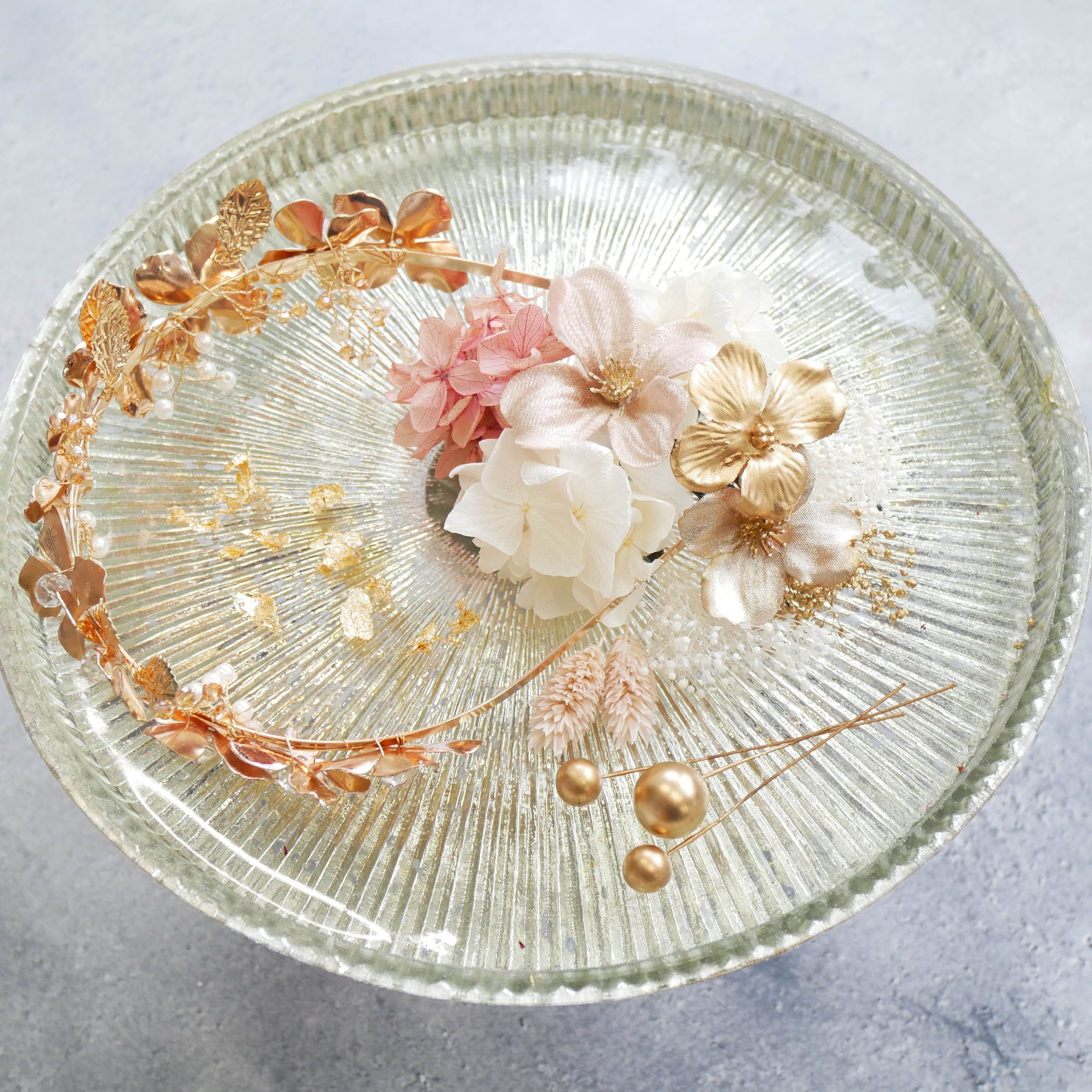 ご専用 E24 ピンクゴールドカチューシャ 髪飾り 成人式 卒業式 袴 振袖 結婚式 ドライフラワー