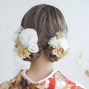 A233 白ゴールド ツイン ローズ ドライフラワー髪飾り リボン 卒業式 袴 成人式 振袖 結婚式
