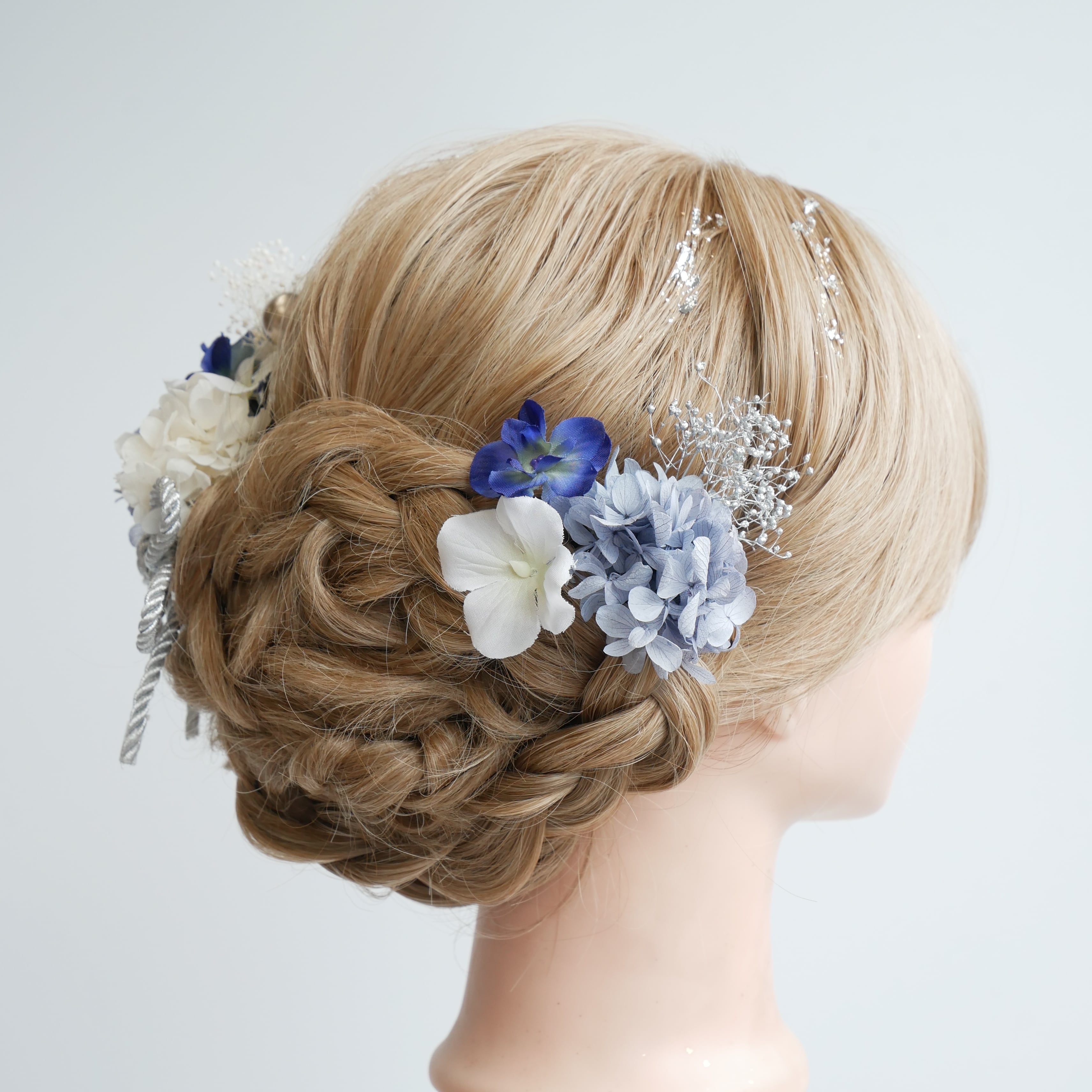 A232 小花 シルバー ブルー リボン ウェディング・結婚式・成人式・卒業式