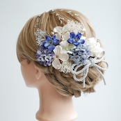 たくさんの小花を合わせて、ふんわりした可愛らしい印象の髪飾りです。