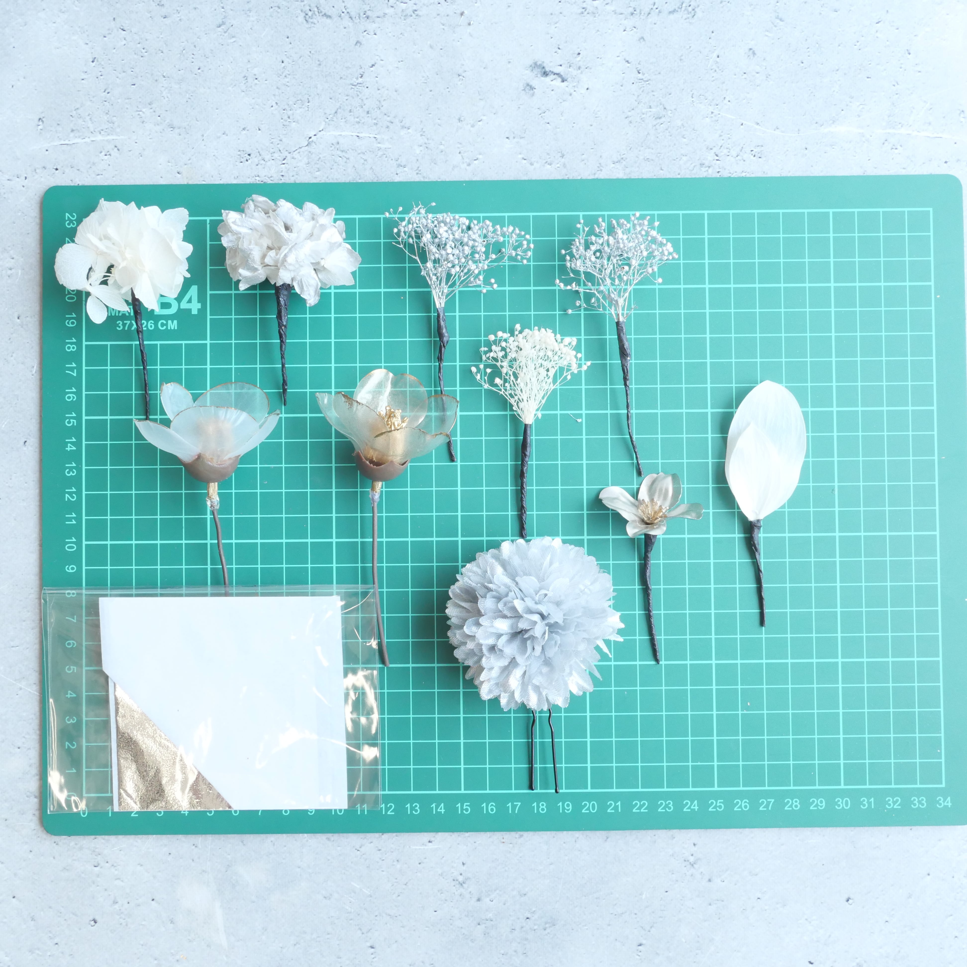 A153 シルバー クリア椿 ドライフラワー 髪飾り 成人式 卒業式 振袖 結婚式 袴