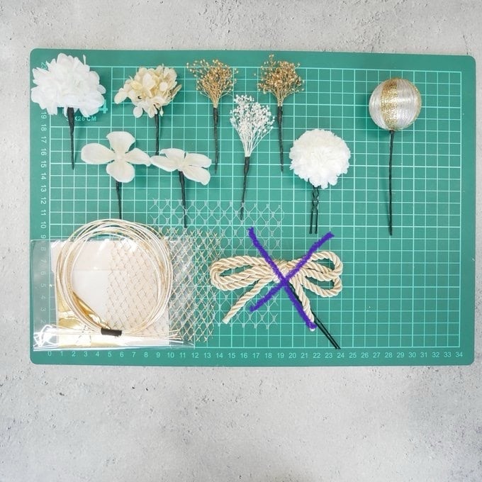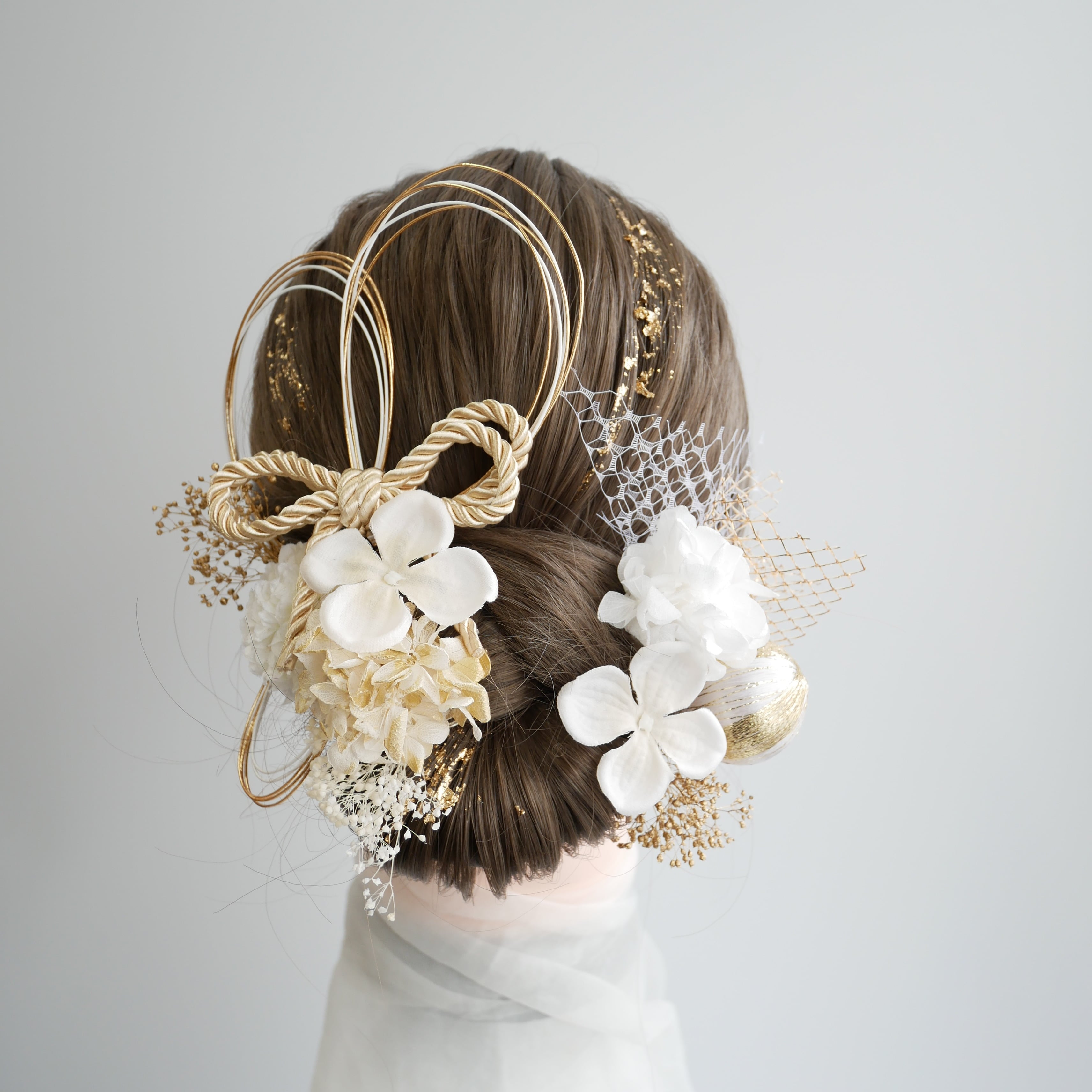 【みゆ様ご専用】S2 白ゴールド ドライフラワー髪飾り ダブルリボン 水引 和玉 成人式 卒業式 結婚式 前撮り