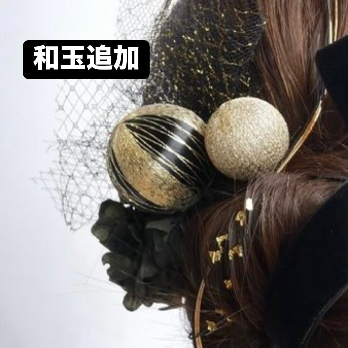 ドライフラワーとダブルリボン、和玉の髪飾り