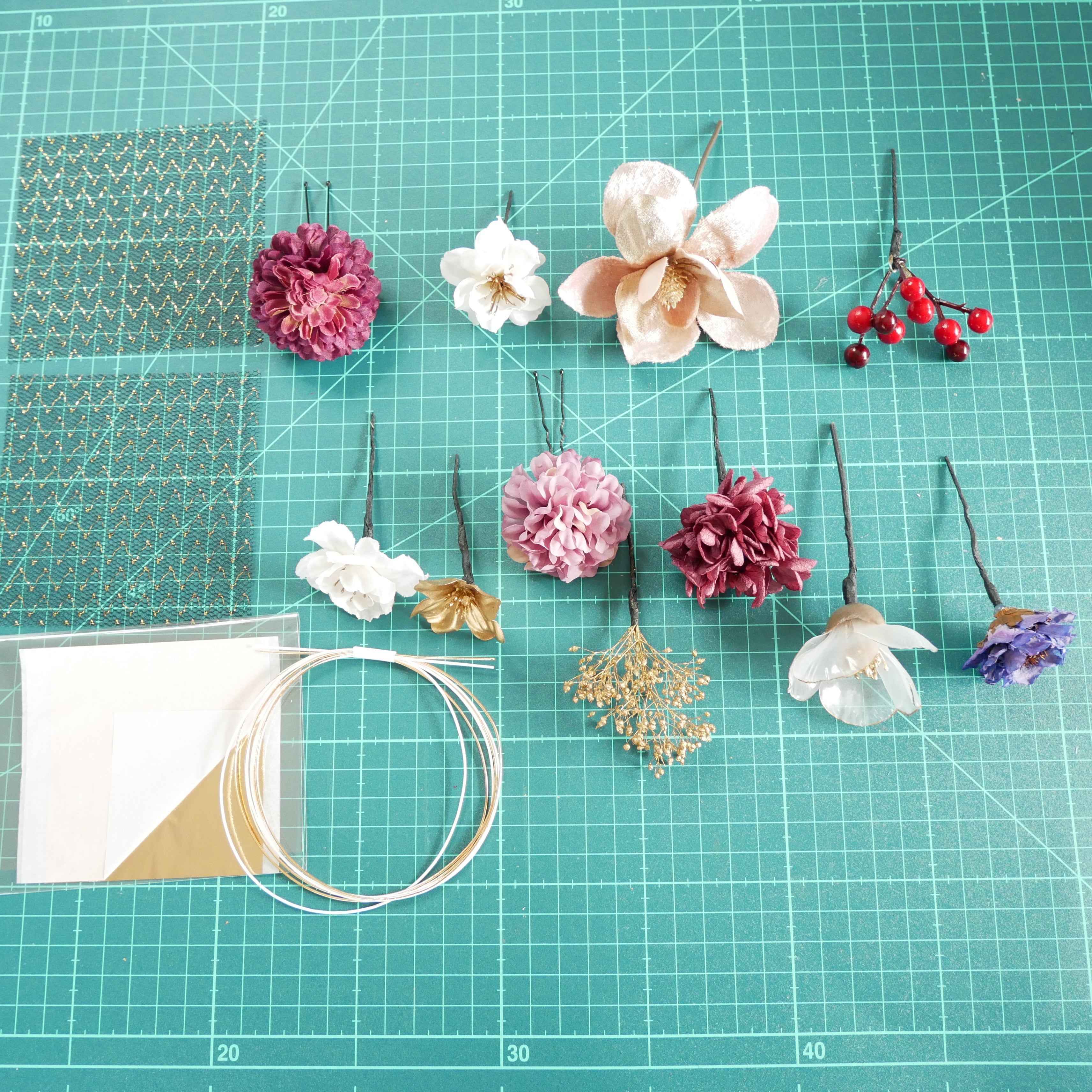 お花 11パーツ(ハードゴールド小、