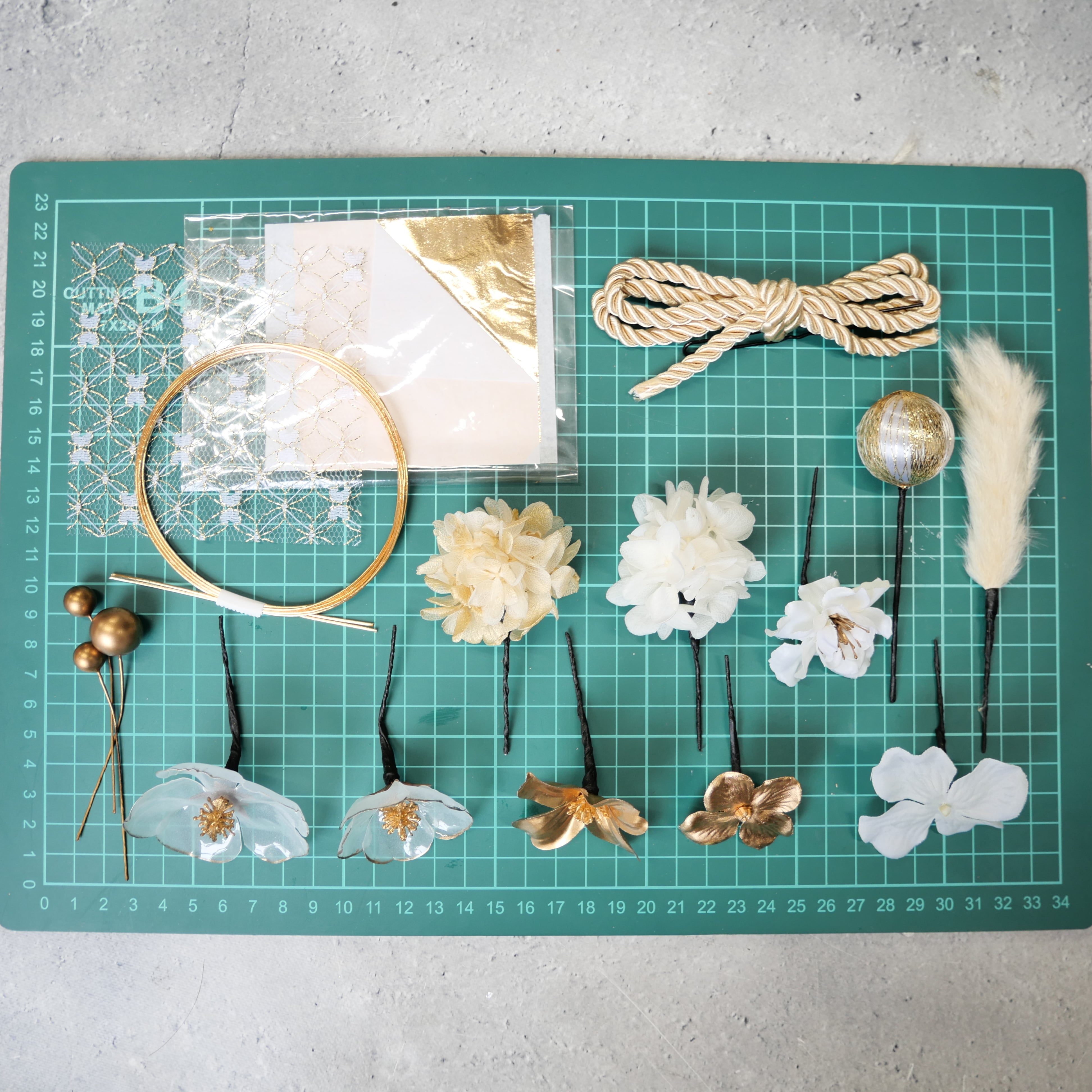 ピック仕様のものは髪から落ちにくいよう粘着質のテープで仕上げております。アメピンなどで補強して止めていただけると安心です。