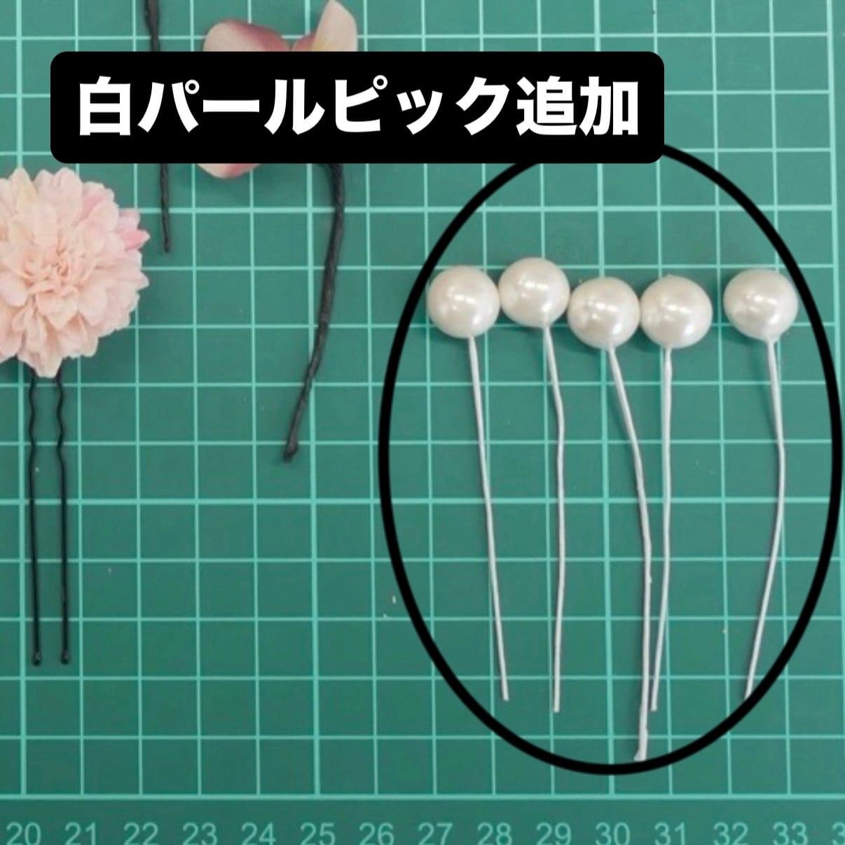 つまみ細工とマムはUピン仕様、その他は全てピック仕様です。