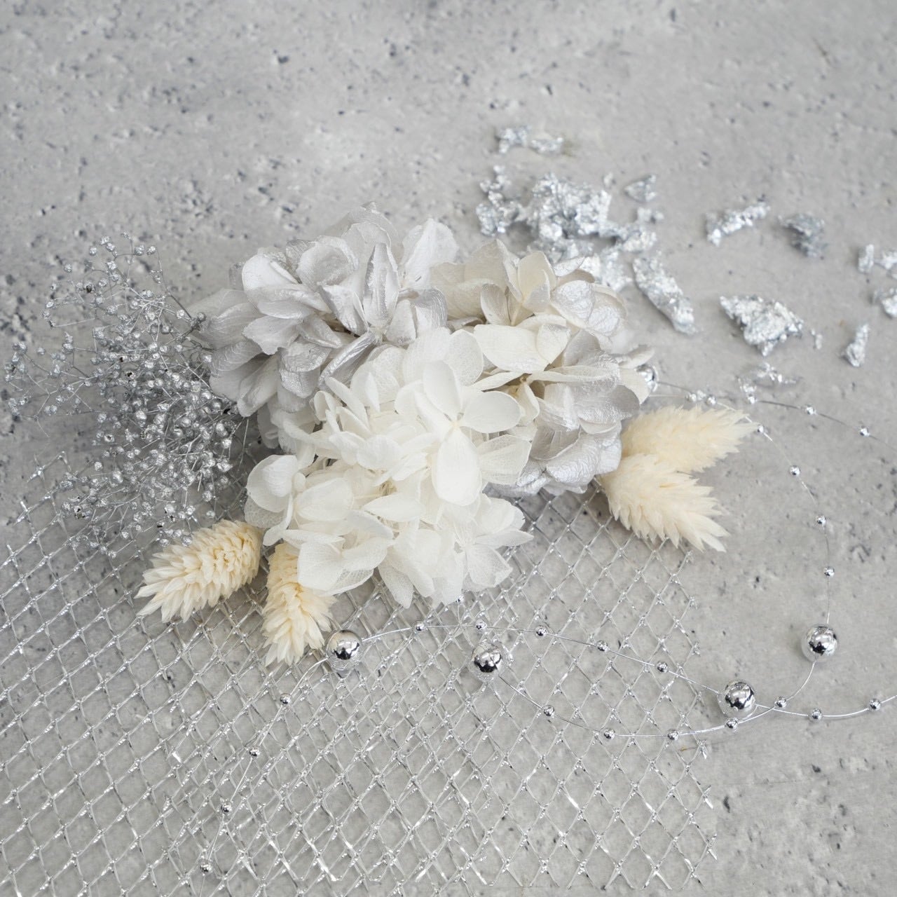A498 ドライフラワー 髪飾り シルバー 卒業式 袴 成人式 振袖 結婚式 和装
