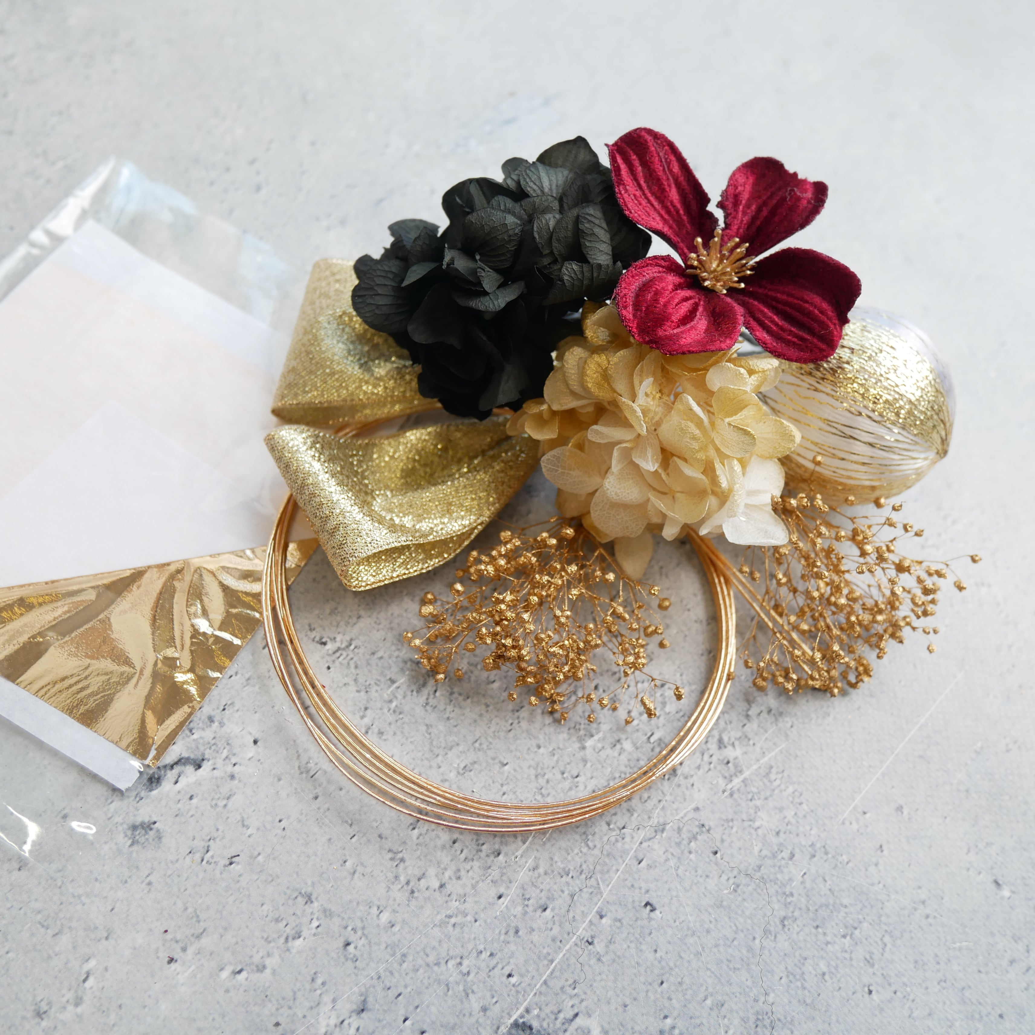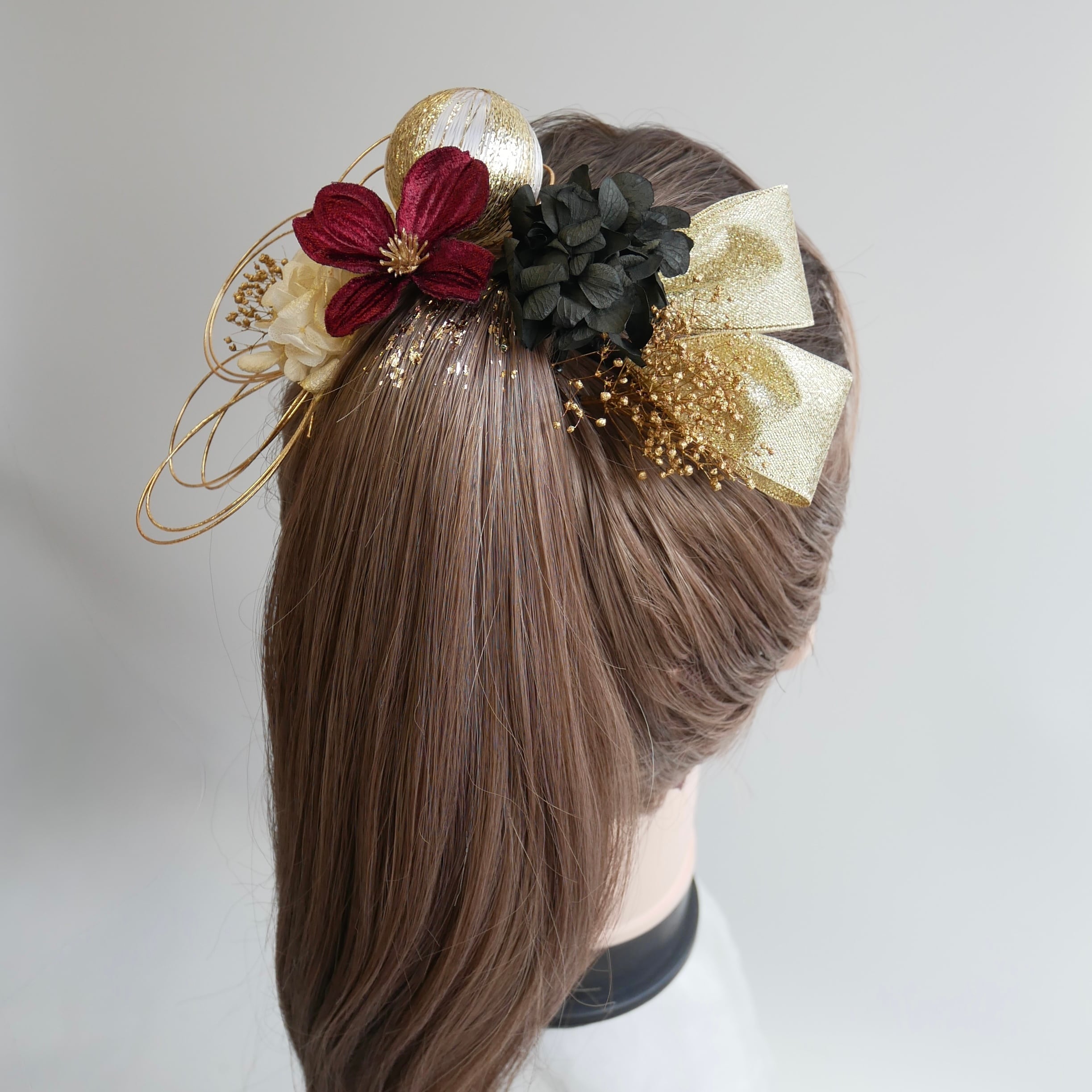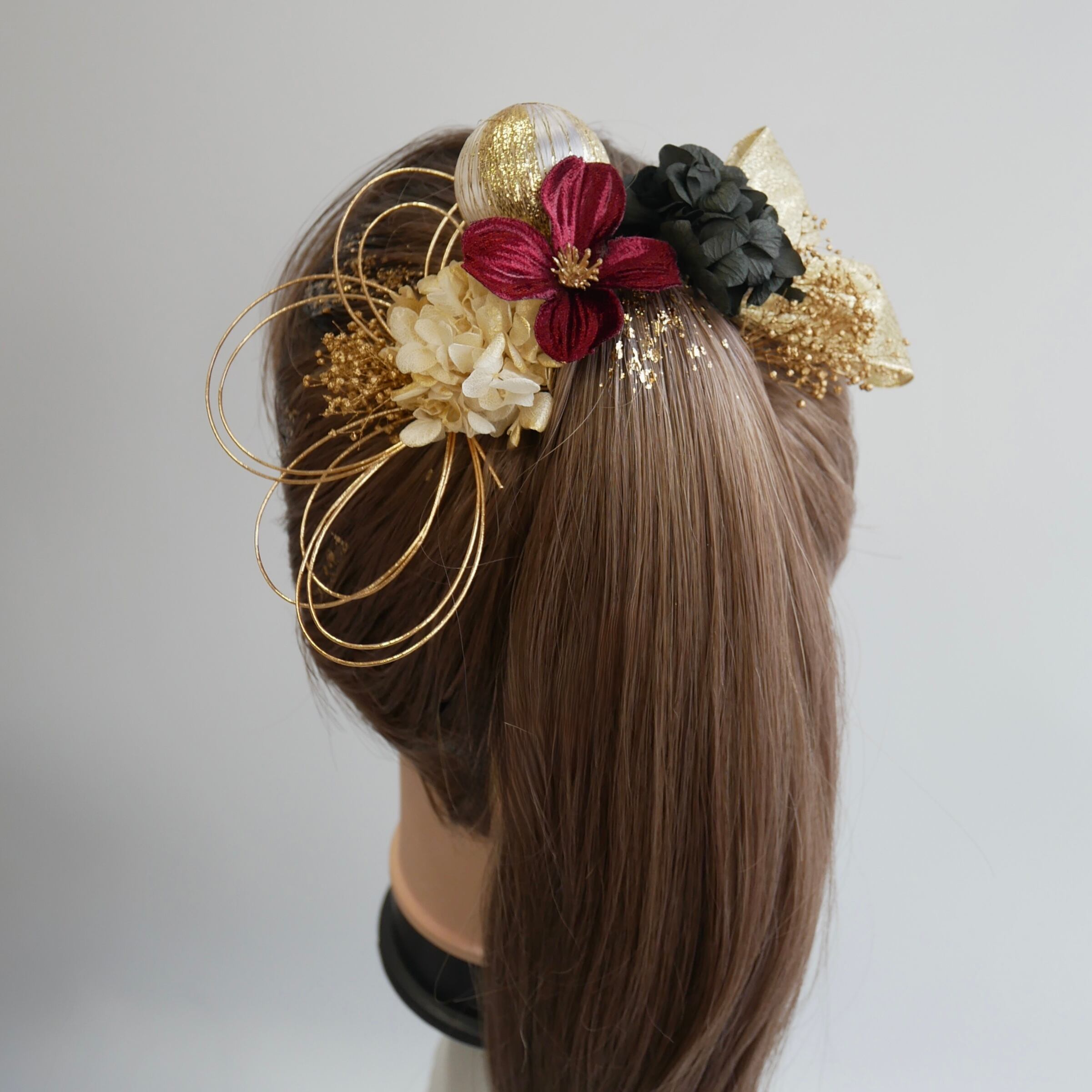 A518 ドライフラワー 髪飾り 赤 黒 ゴールド 卒業式 袴 成人式 振袖 結婚式 和装