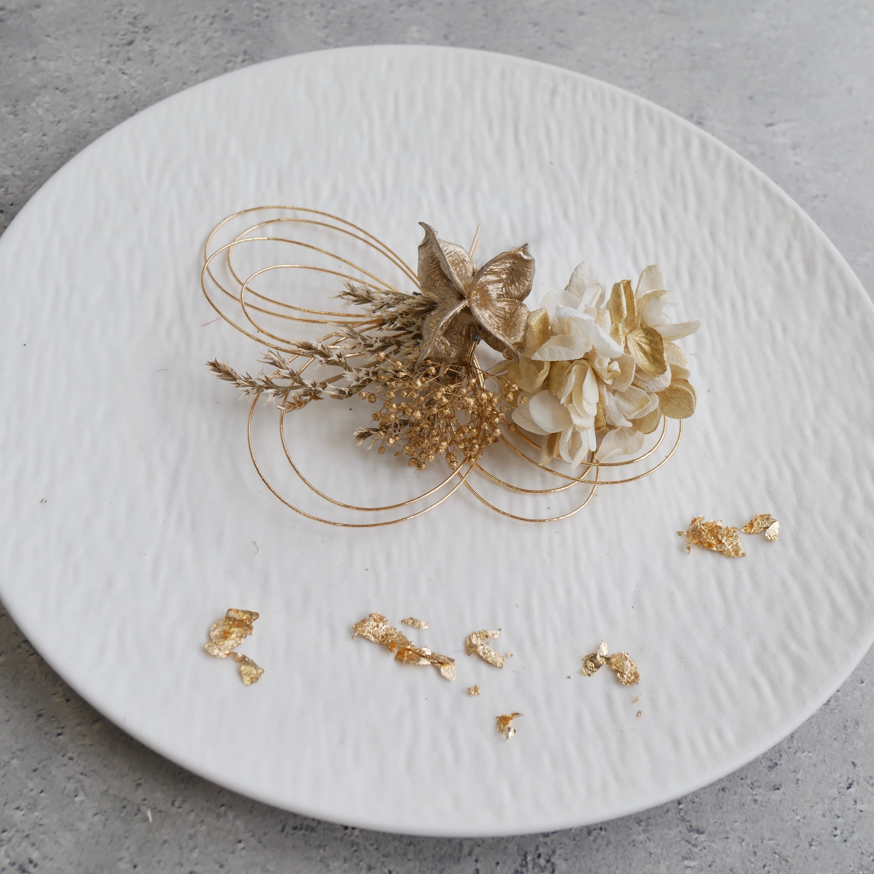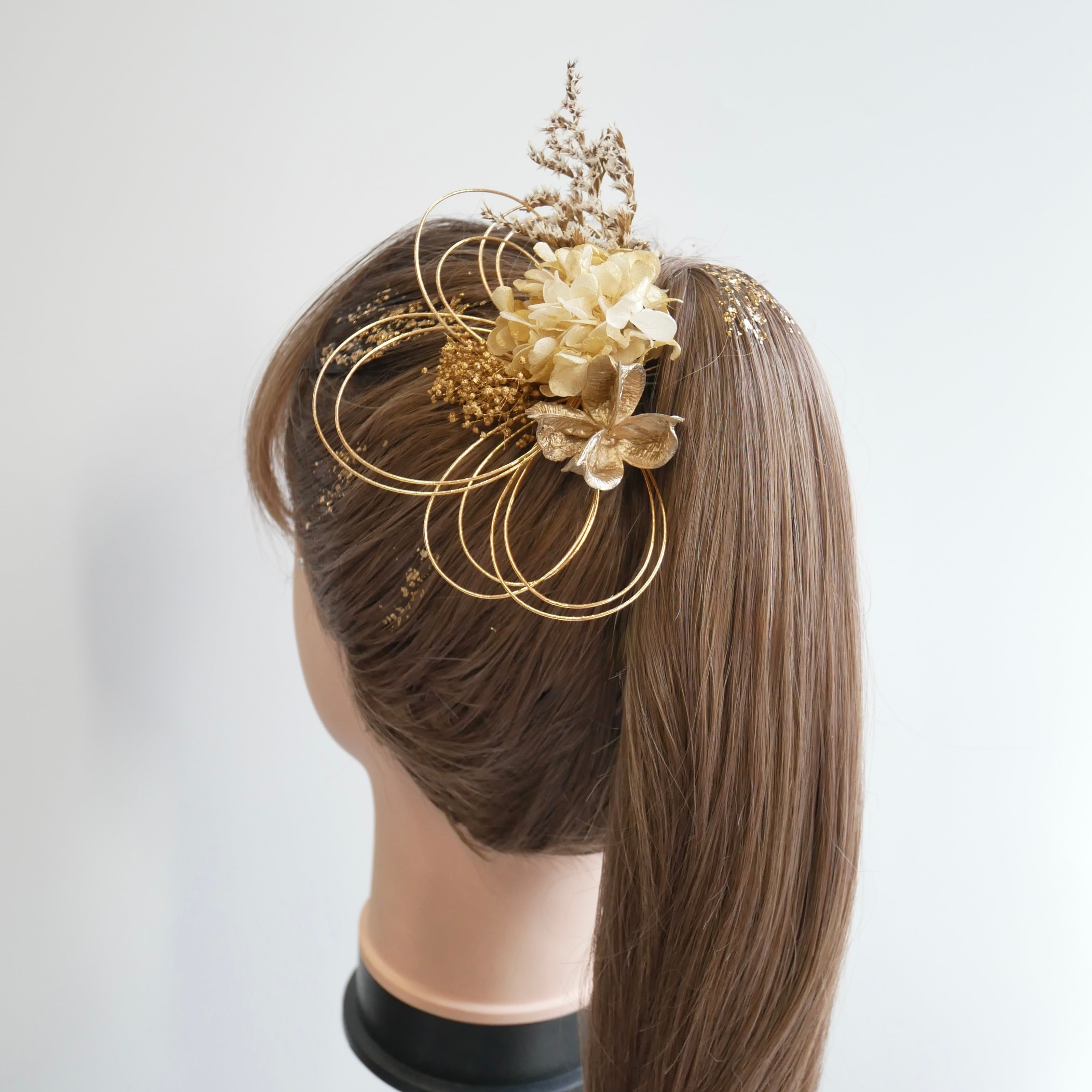 A517 ドライフラワー 髪飾り 白 ゴールド 卒業式 袴 成人式 振袖 結婚式 和装