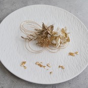 白ゴールド系のお花で派手すぎず上品な輝きに。
