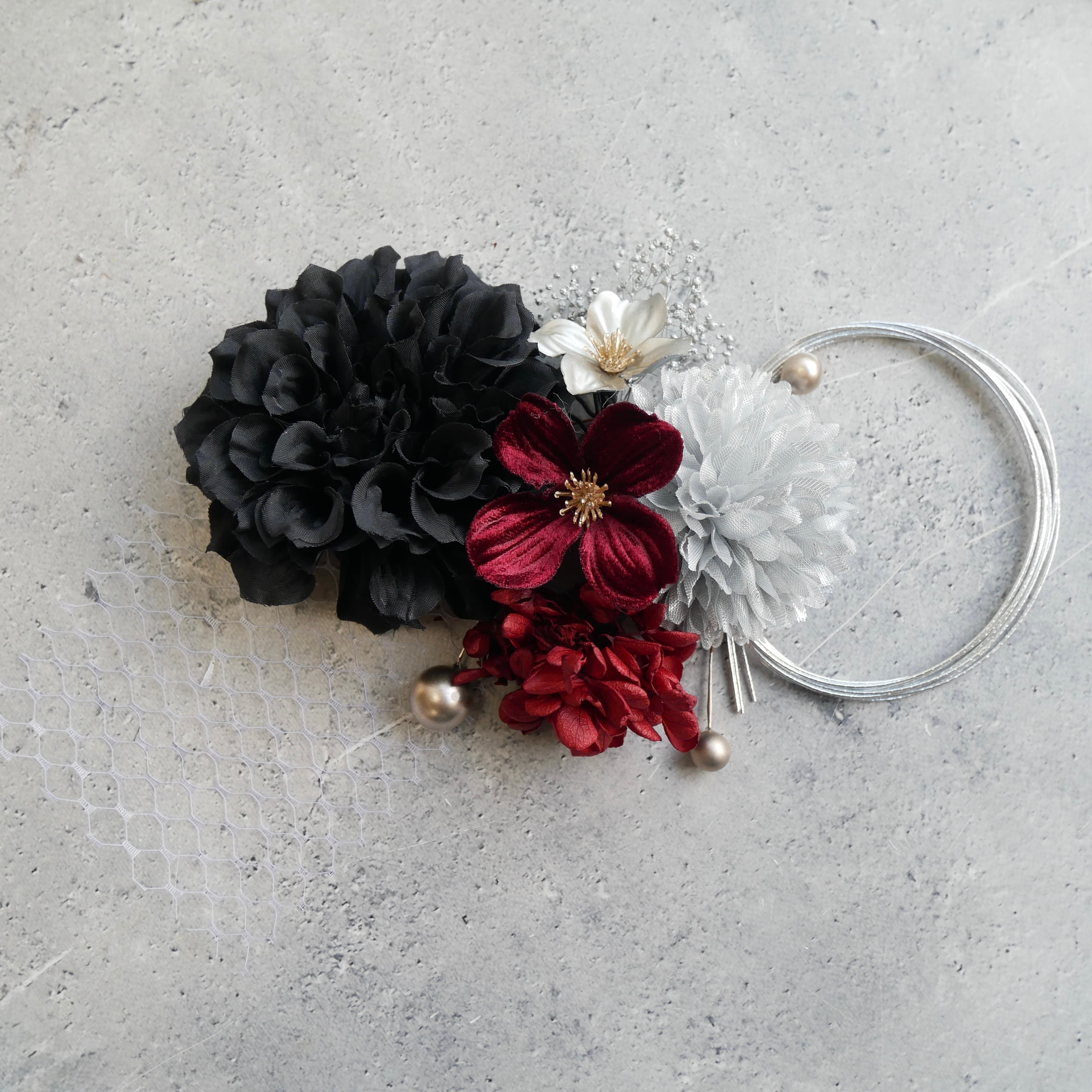 A519 ダリア マム ドライフラワー 髪飾り 黒 シルバー ボルドー 卒業式 袴 成人式 振袖 結婚式 和装