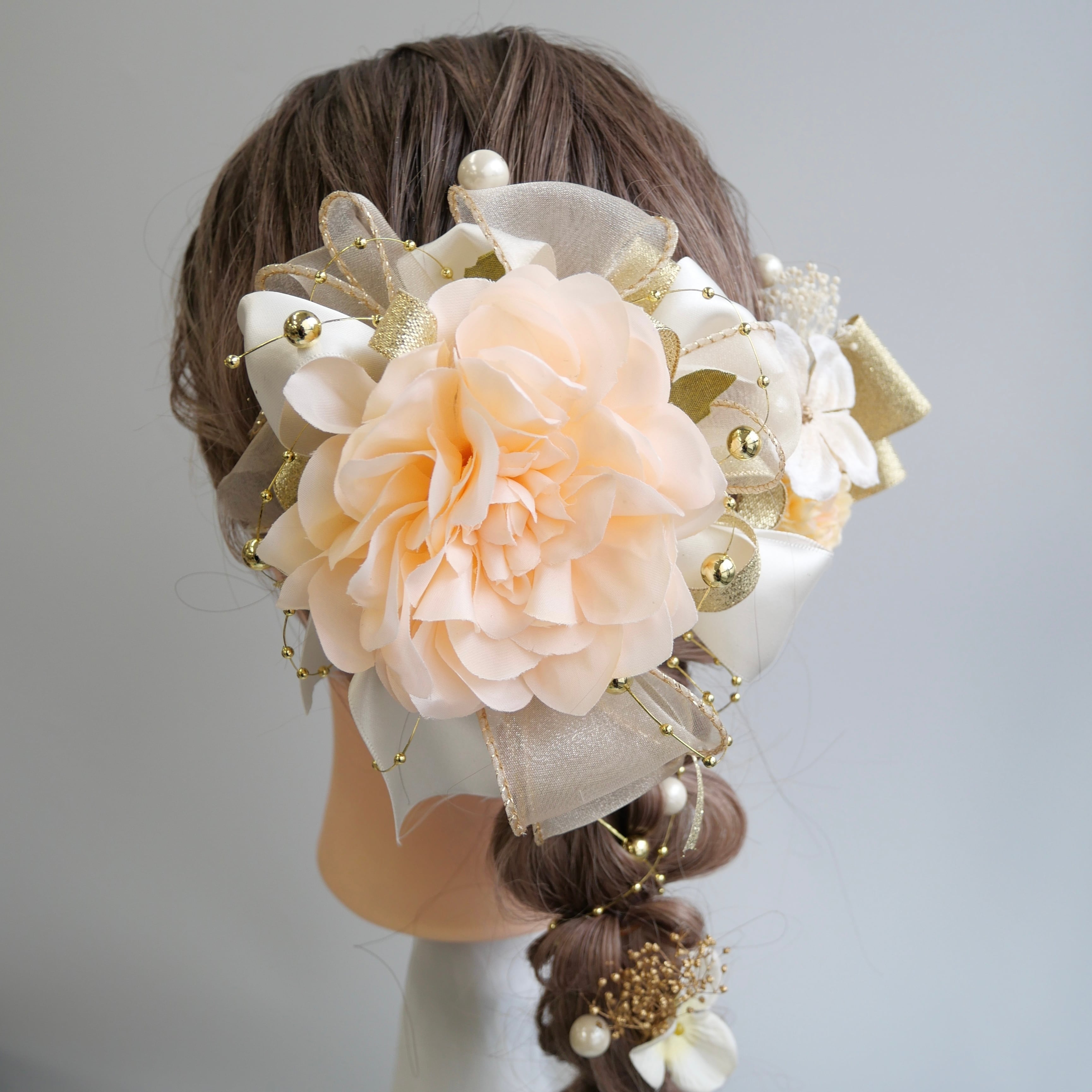 A506 ドライフラワー 髪飾り ペールオレンジ ダリア 卒業式 袴 成人式 振袖 結婚式 和装