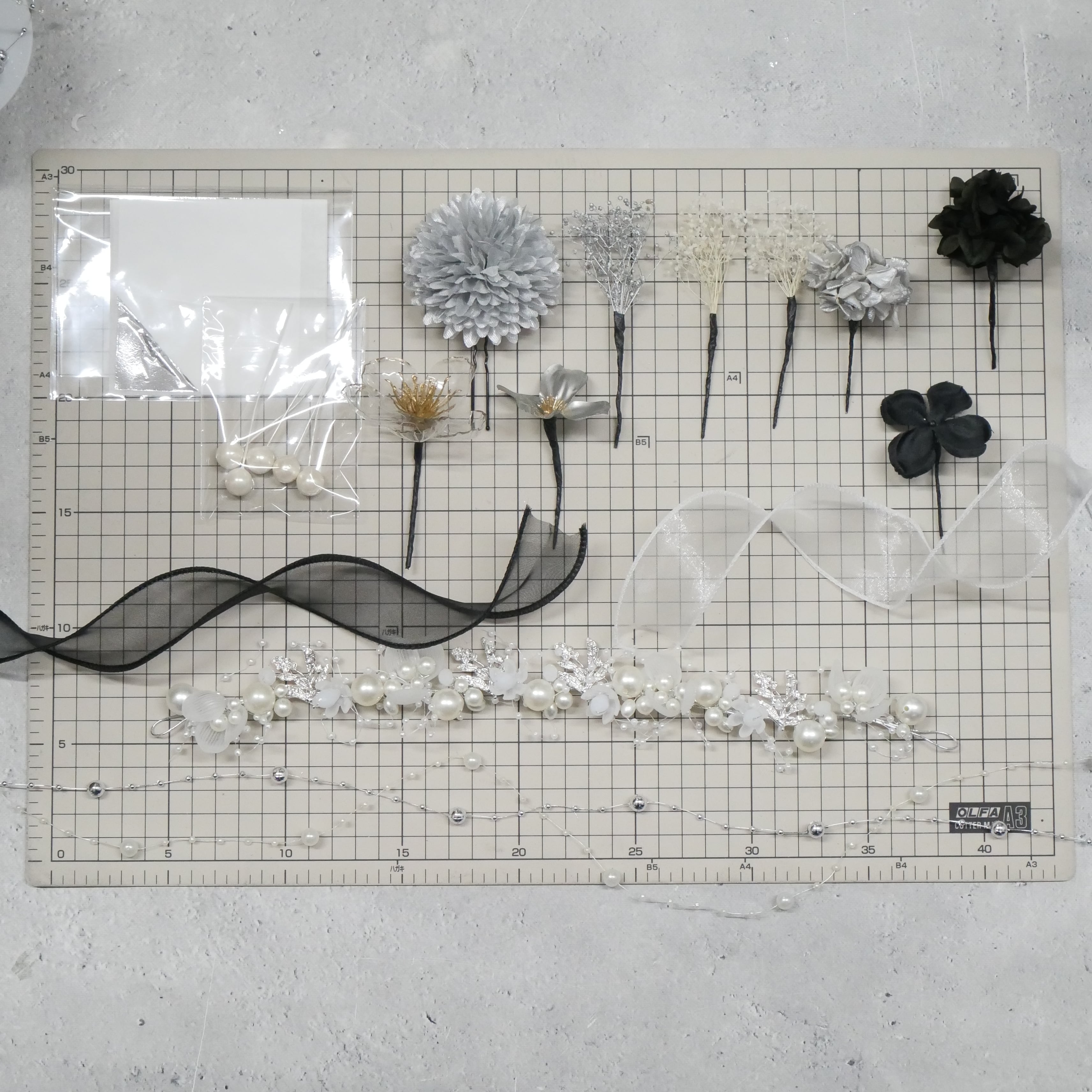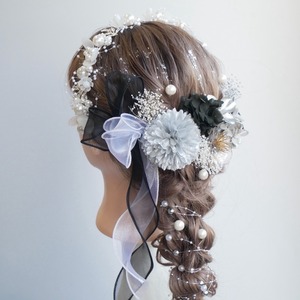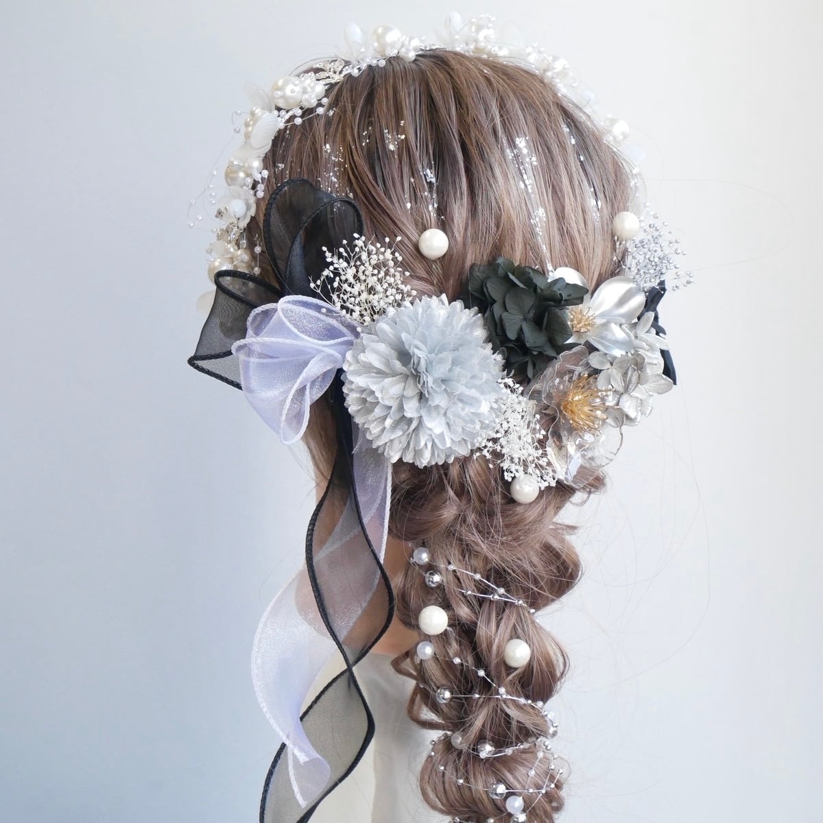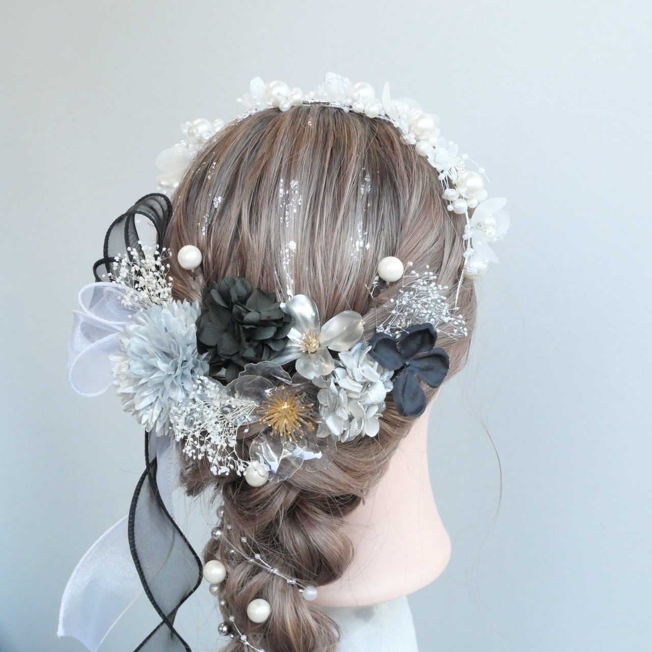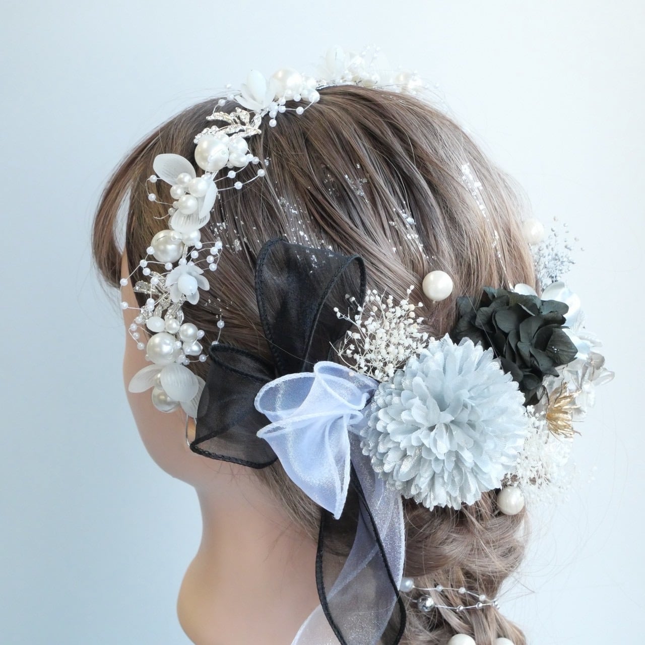 【ご専用】A122 カチューシャ ドライフラワー パール 髪飾り 黒 白 シルバー 卒業式 袴 成人式 振袖 結婚式 和装