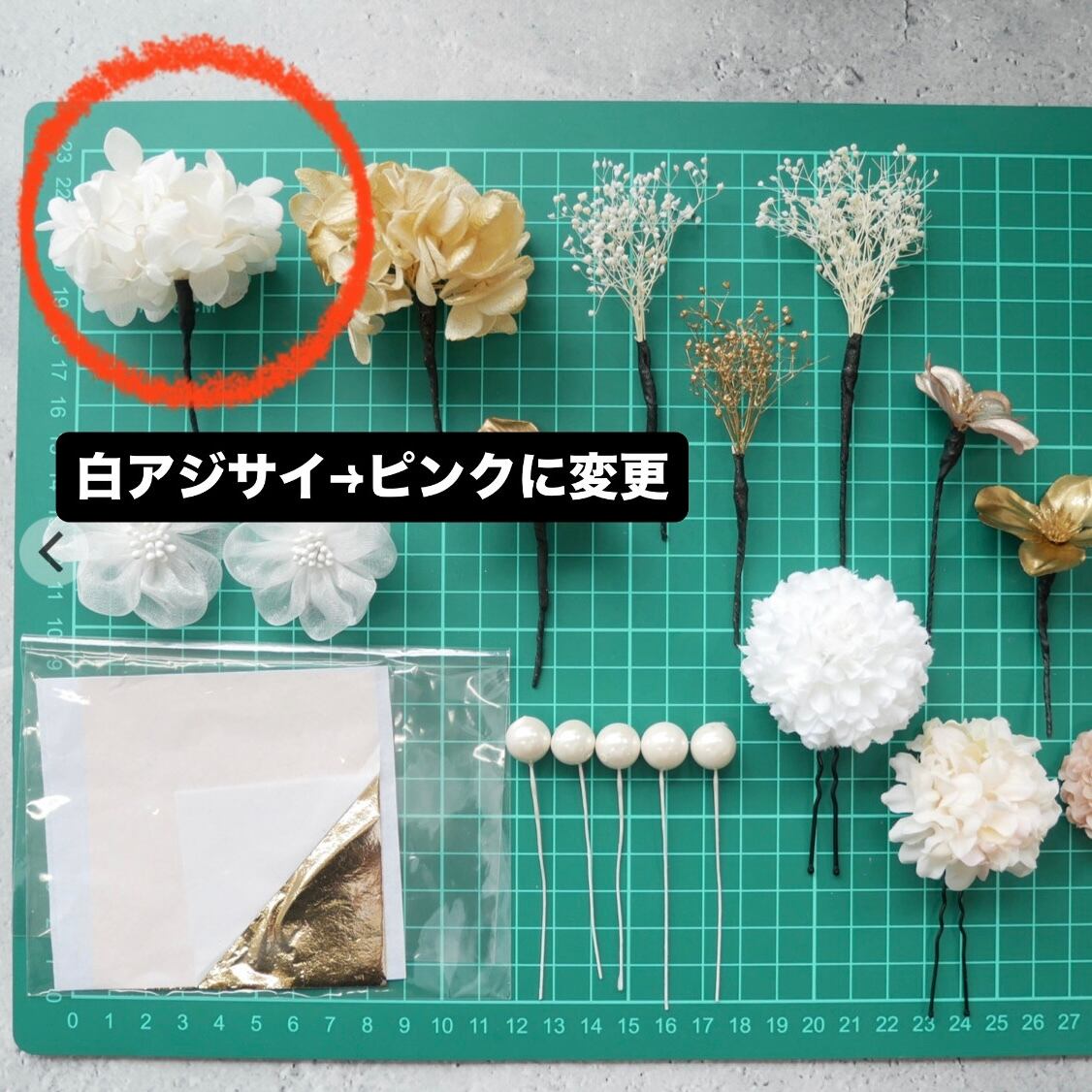 かすみ草 カスミソウ かすみそう 紫陽花 アジサイ 白 ホワイト ニュアンスカラー ゴールド 金箔アレンジ ベルベットリボン オーガンジーリボン