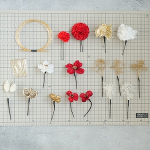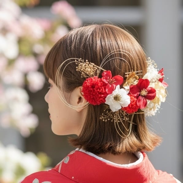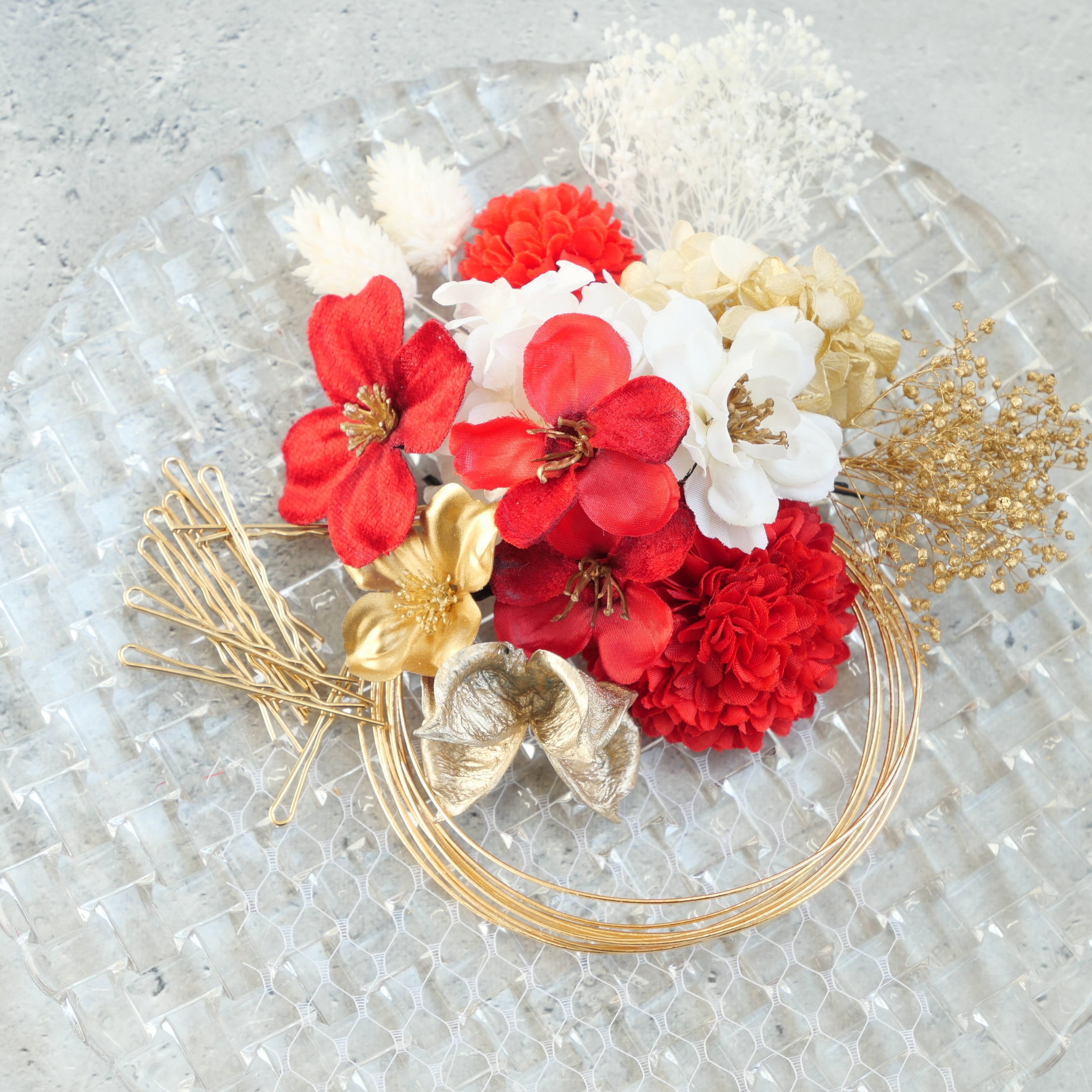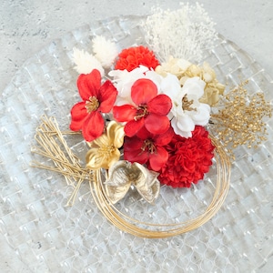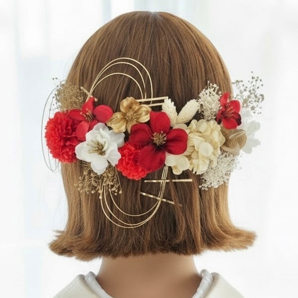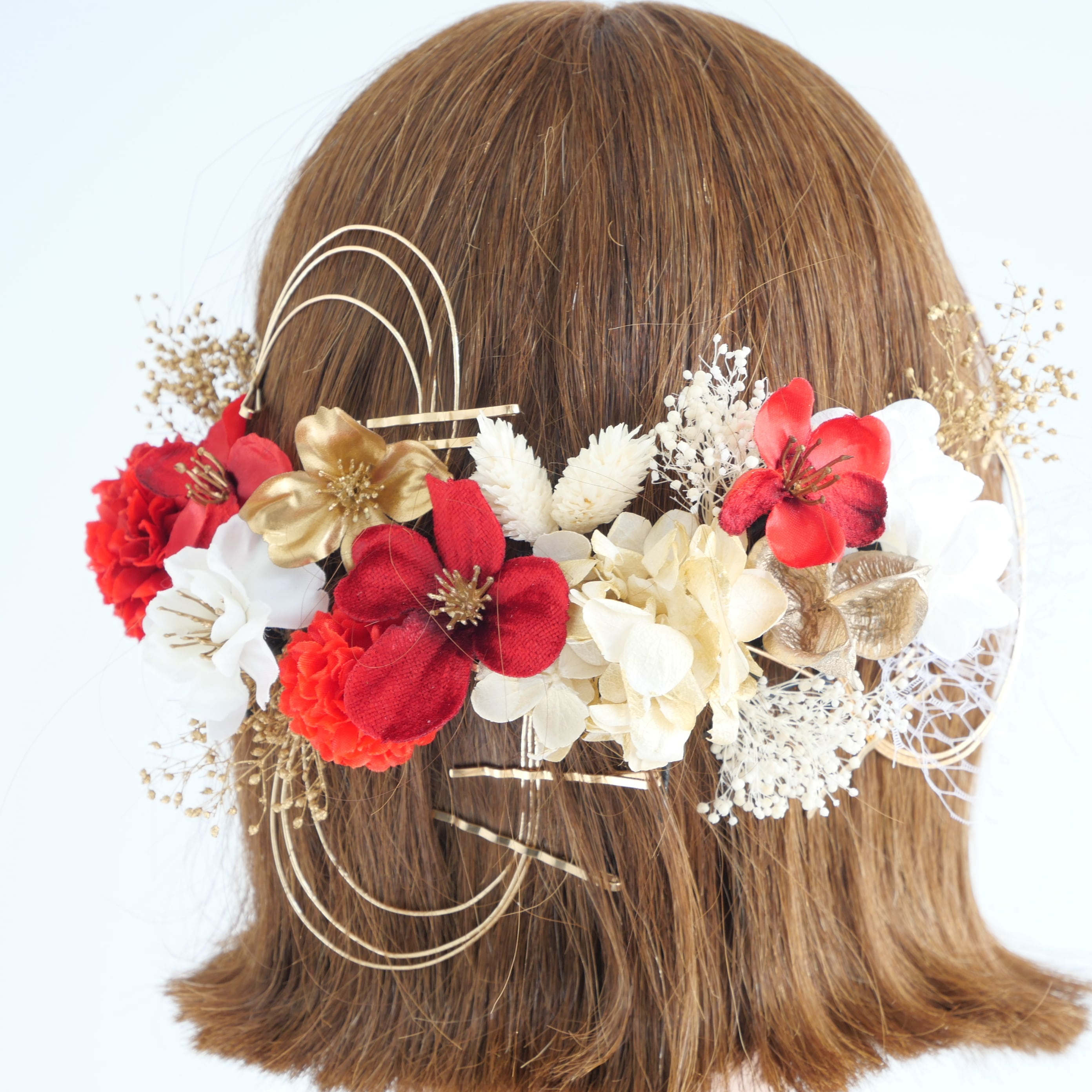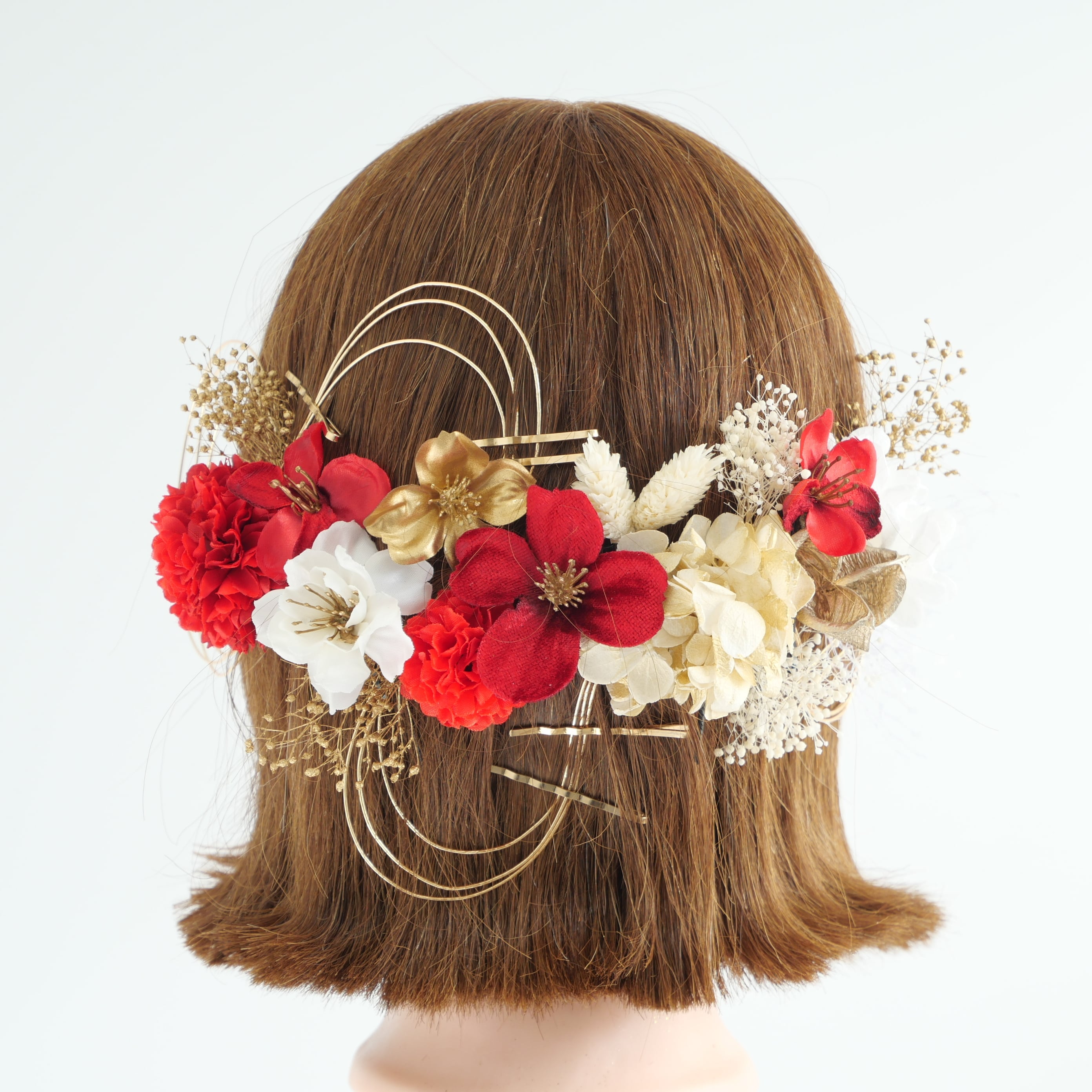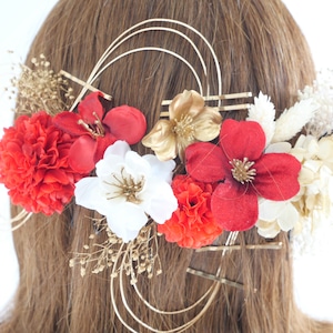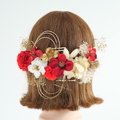 A546 ドライフラワー ゴールドピン 髪飾り 赤 ゴールド 卒業式 袴 成人式 振袖 結婚式 和装