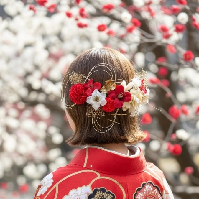 和装・洋装どちらにも合わせやすく、結婚式や前撮り、成人式、卒業式など特別な日の装いにおすすめ。