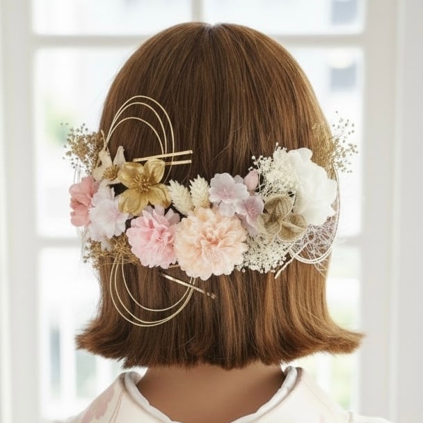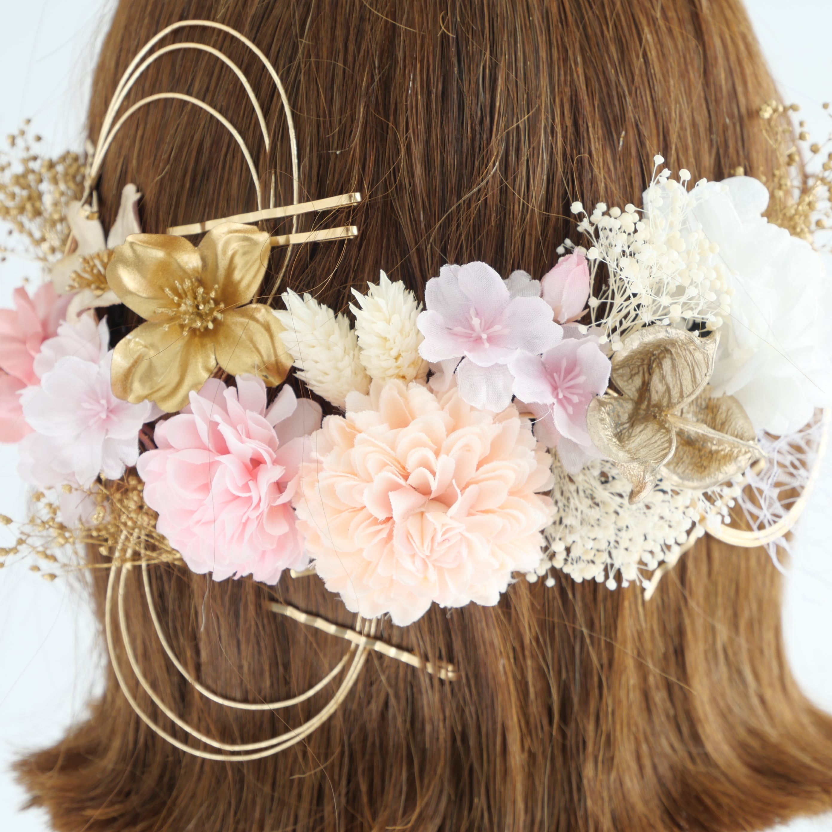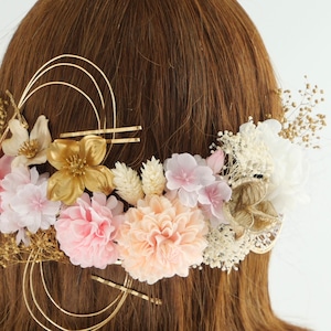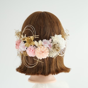 A547 ドライフラワー ゴールドピン 髪飾り ピンクゴールド 卒業式 袴 成人式 振袖 結婚式 和装