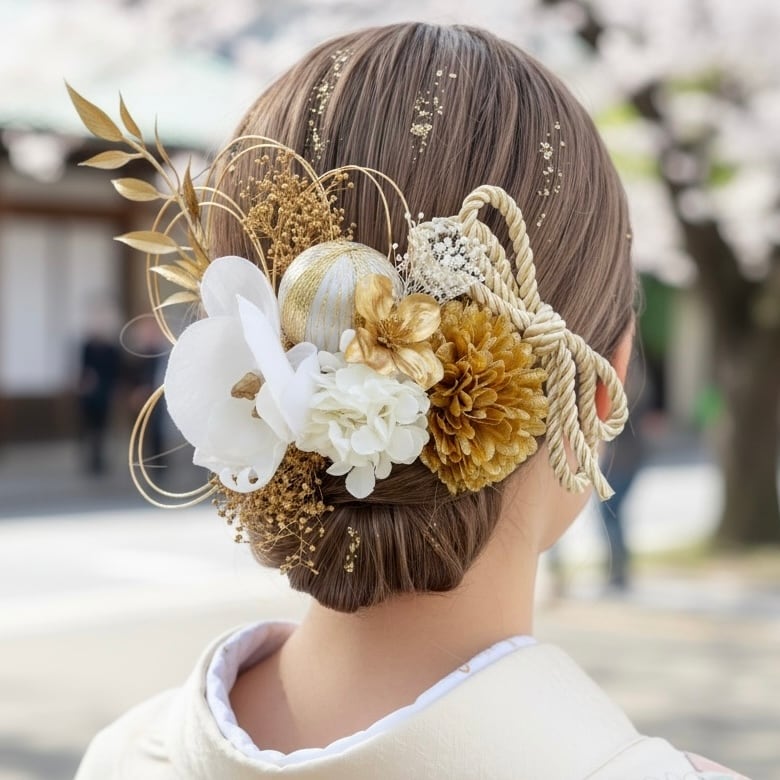 和装・洋装どちらにも合わせやすく、結婚式や前撮り、成人式、卒業式など特別な日の装いにおすすめ。