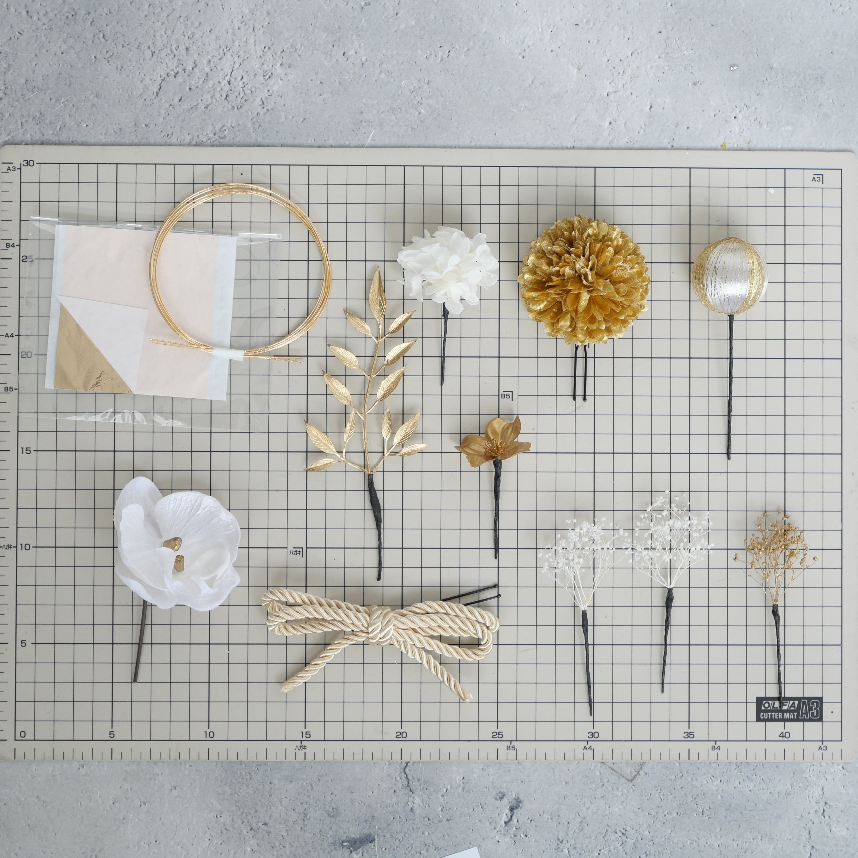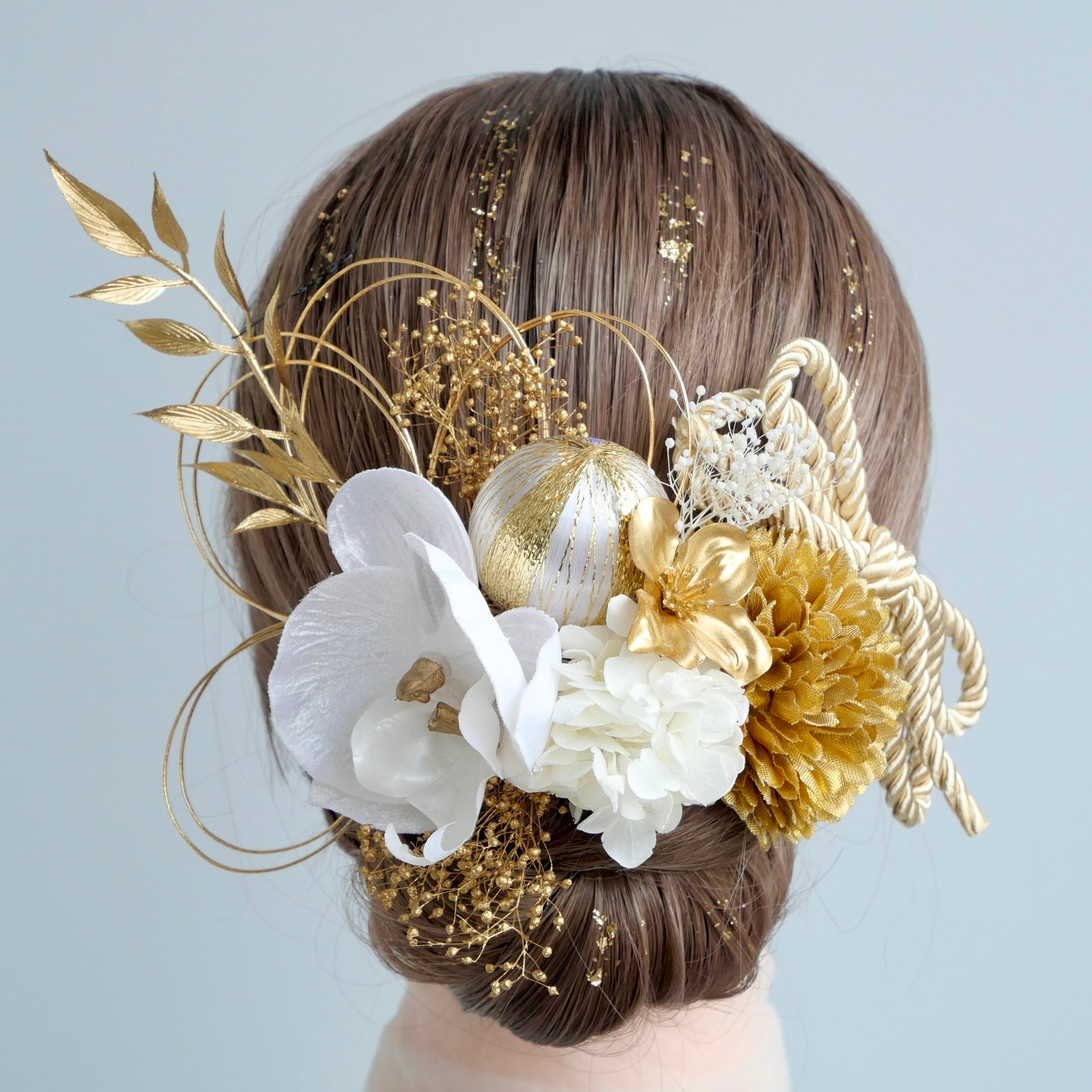 かすみ草 カスミソウ かすみそう 紫陽花 アジサイ ゴールド シルバー 白 紐アレンジ 水引アレンジ 金箔アレンジ