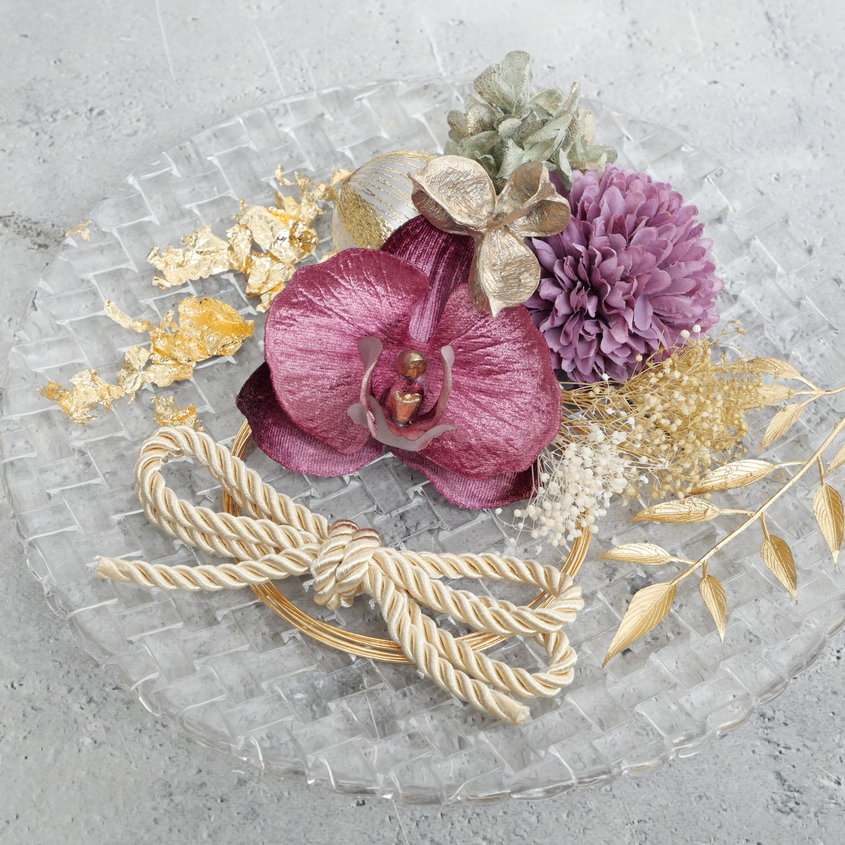 かすみ草 カスミソウ かすみそう 紫陽花 アジサイ ゴールド シルバー 白 紐アレンジ 水引アレンジ 金箔アレンジ