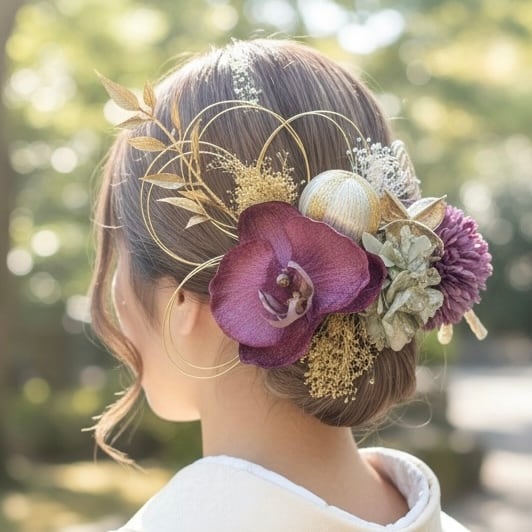和装・洋装どちらにも合わせやすく、結婚式や前撮り、成人式、卒業式など特別な日の装いにおすすめ。