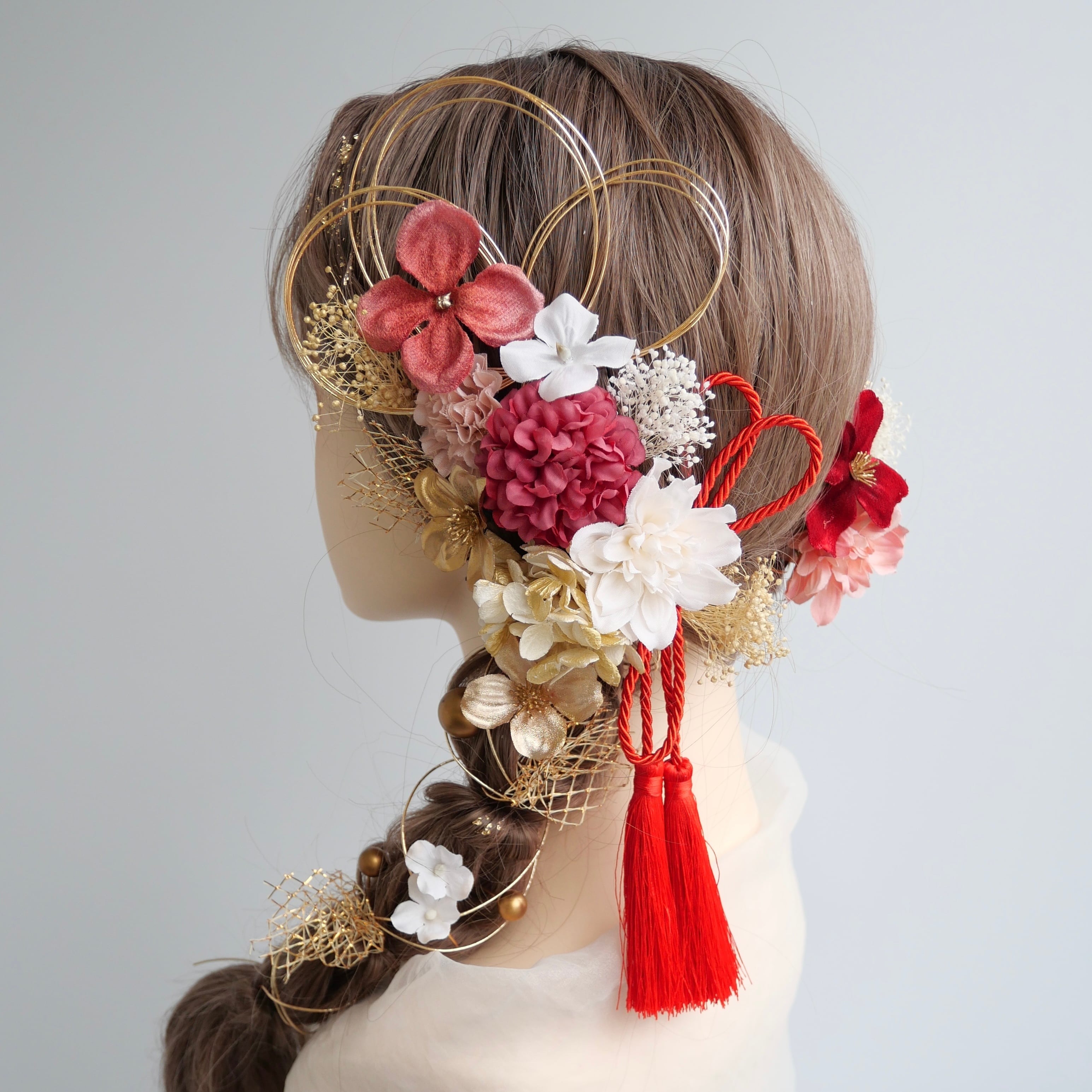 A476 赤ピンク 髪飾り 卒業式 袴 成人式 振袖 結婚式 和装