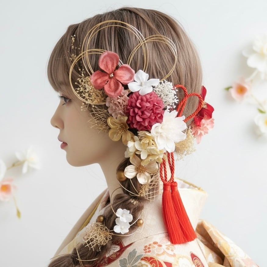 華やかさと上品さを兼ね備えた、和装にぴったりのヘアアクセサリーセットです。