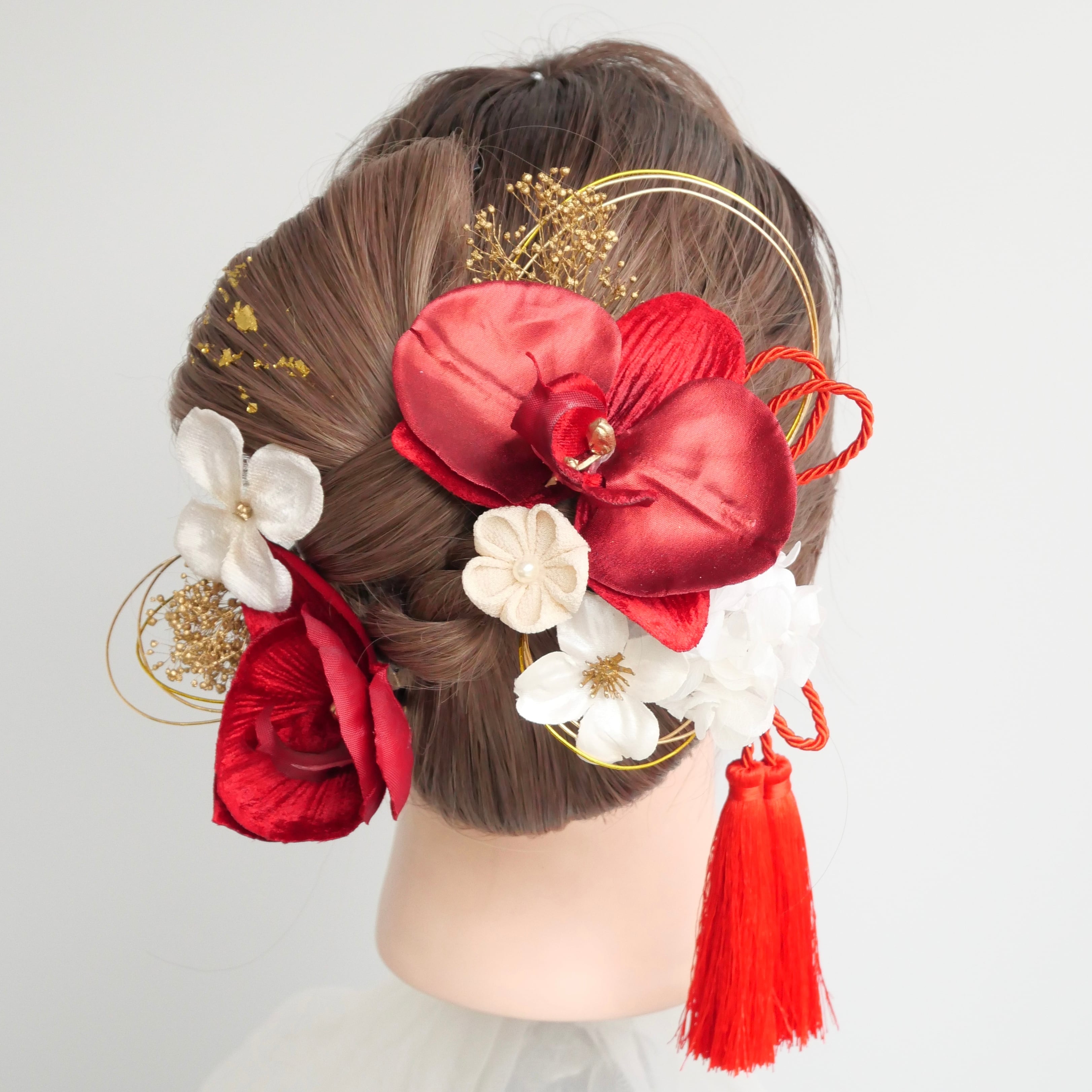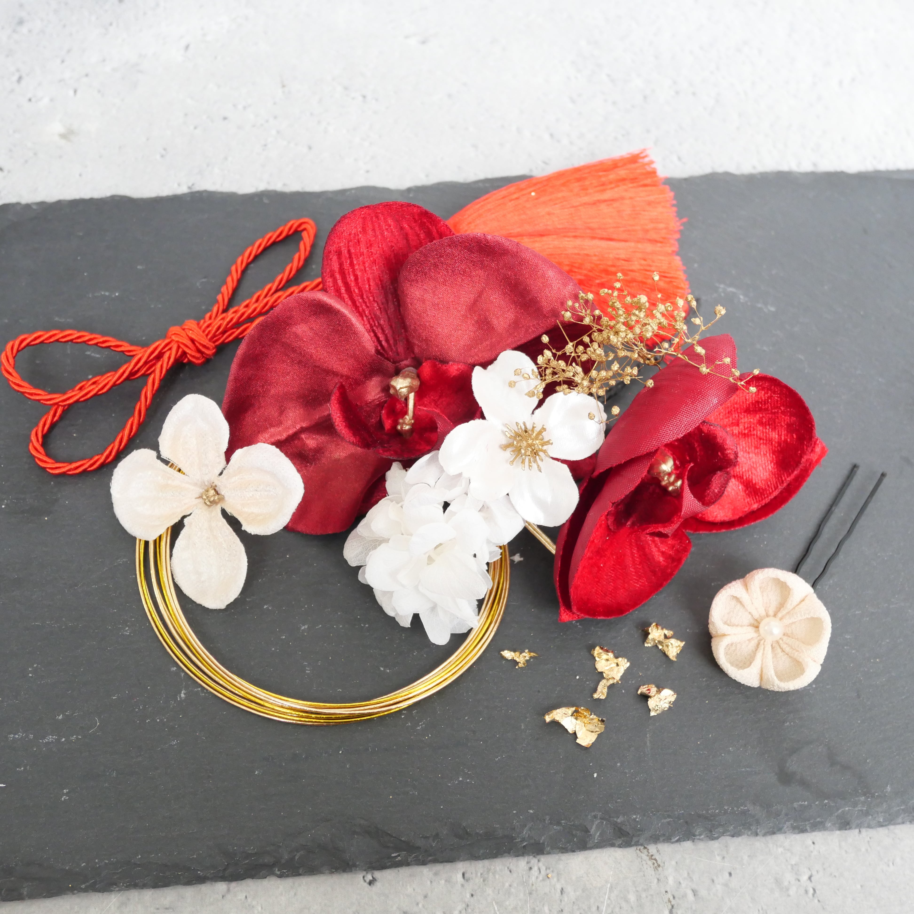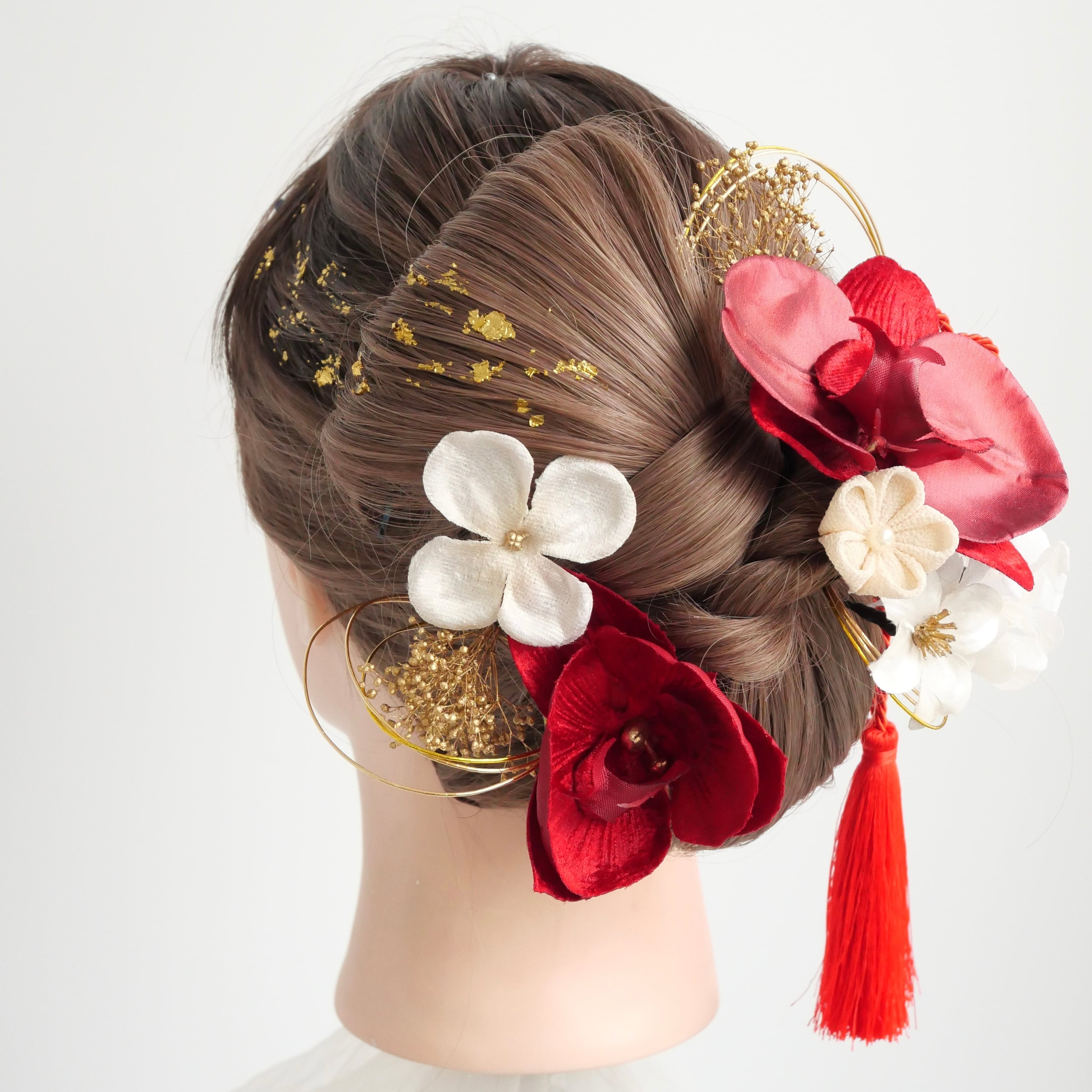 A581 胡蝶蘭 赤白 髪飾り 卒業式 袴 成人式 振袖 結婚式 和装