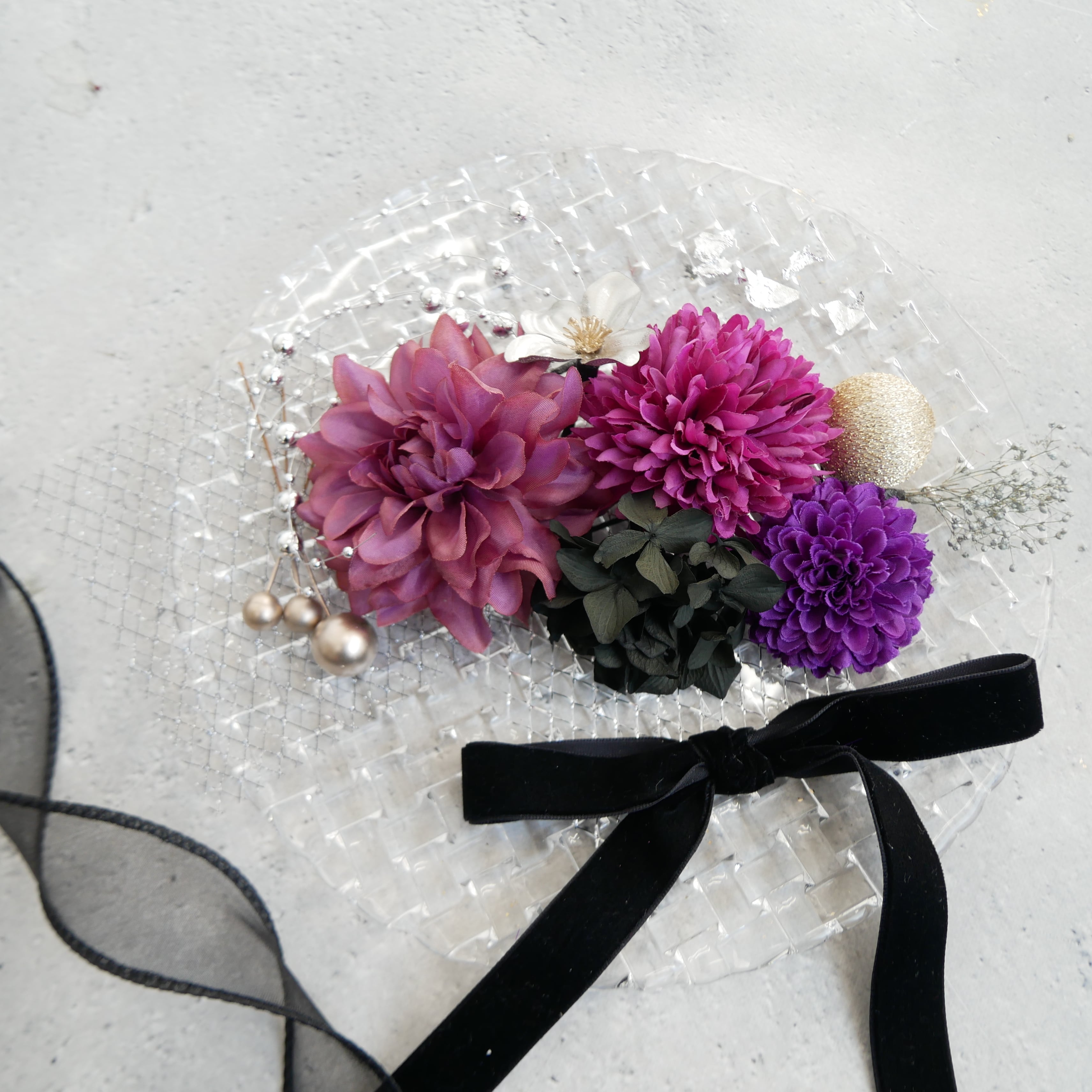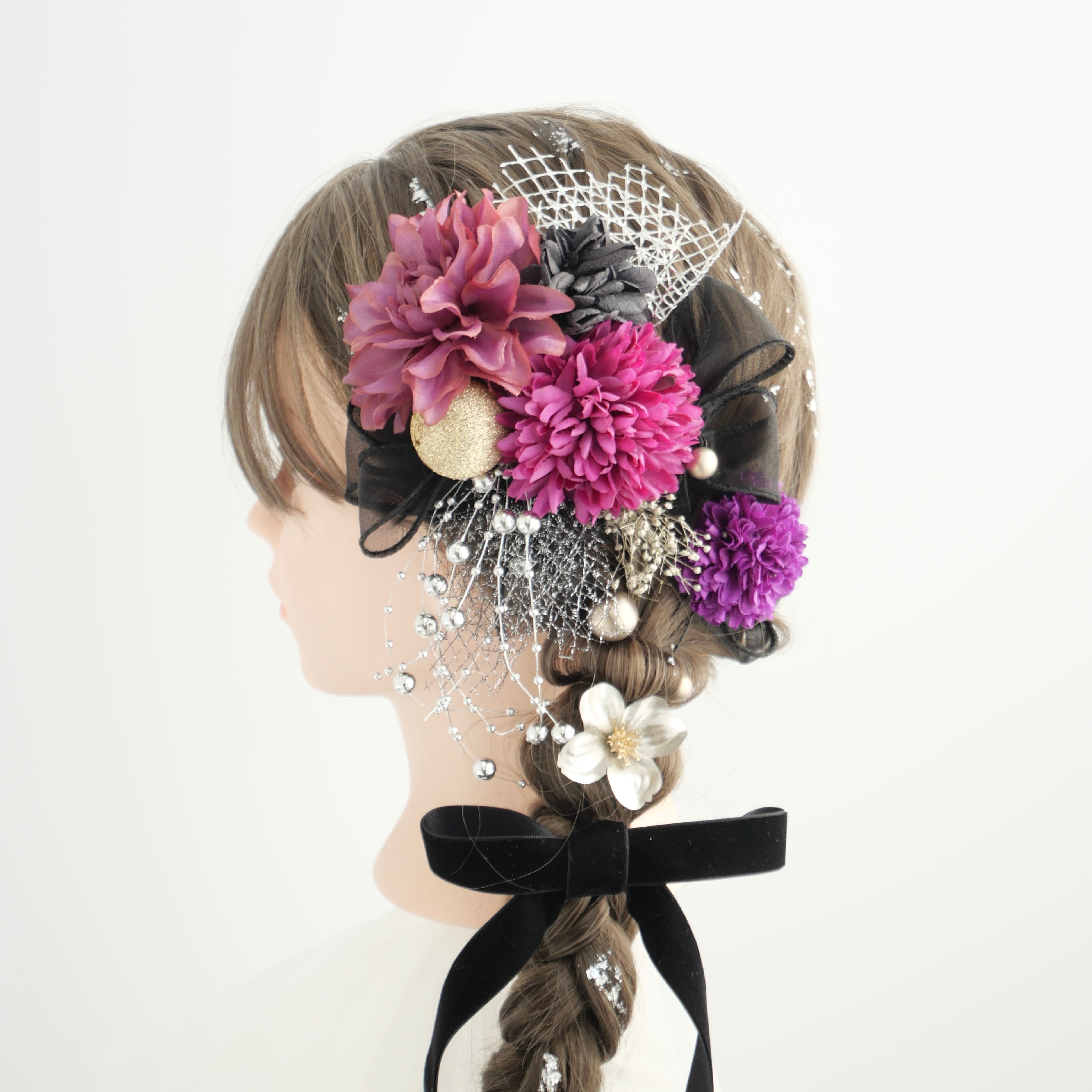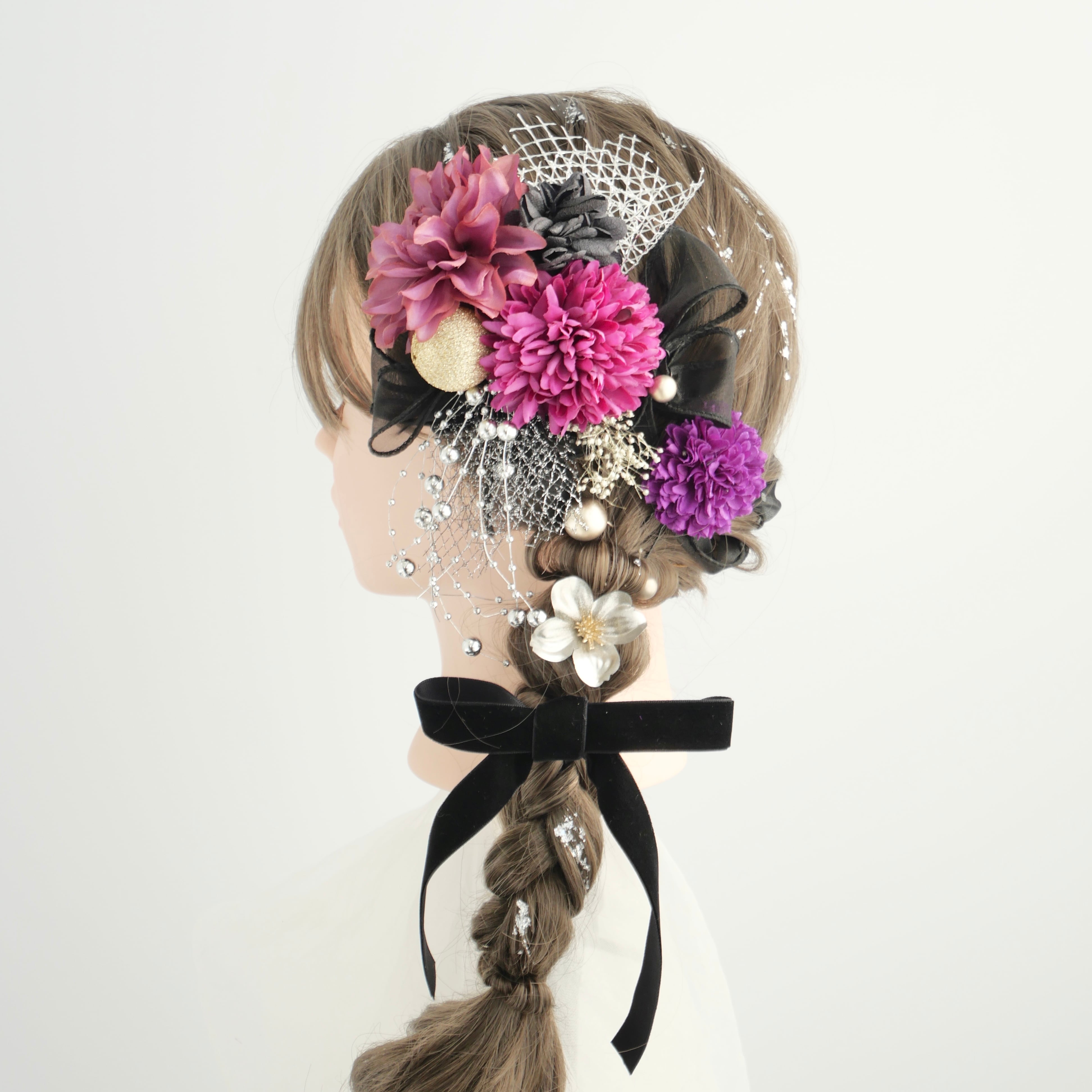 A362 紫 黒 ダリアの髪飾り 成人式 卒業式 前撮り