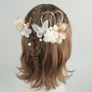 A041 ドライフラワー 髪飾り 白ピンク 卒業式 袴 成人式 振袖 結婚式 和装