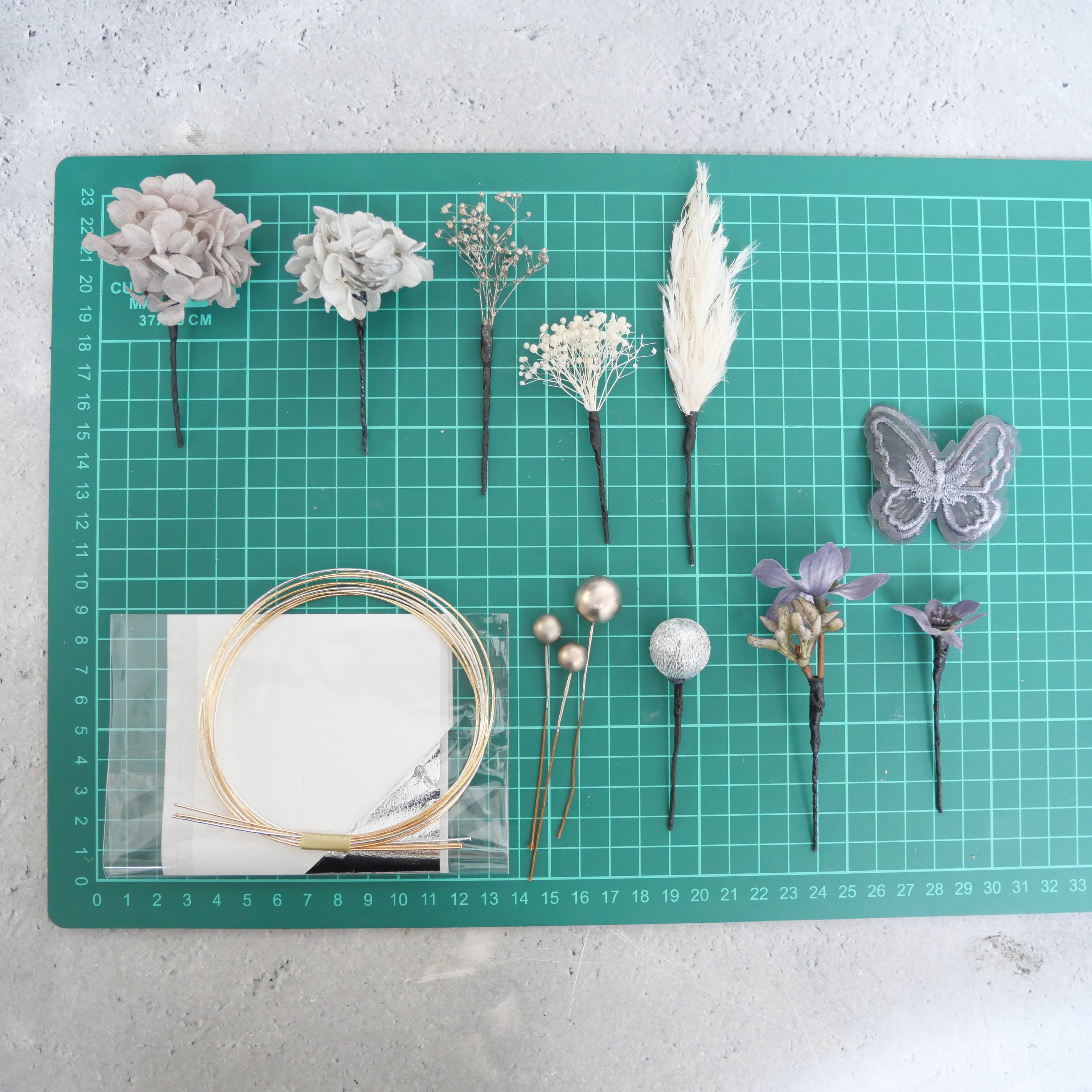 A043 ドライフラワー 髪飾り グレー 卒業式 袴 成人式 振袖 結婚式 和装