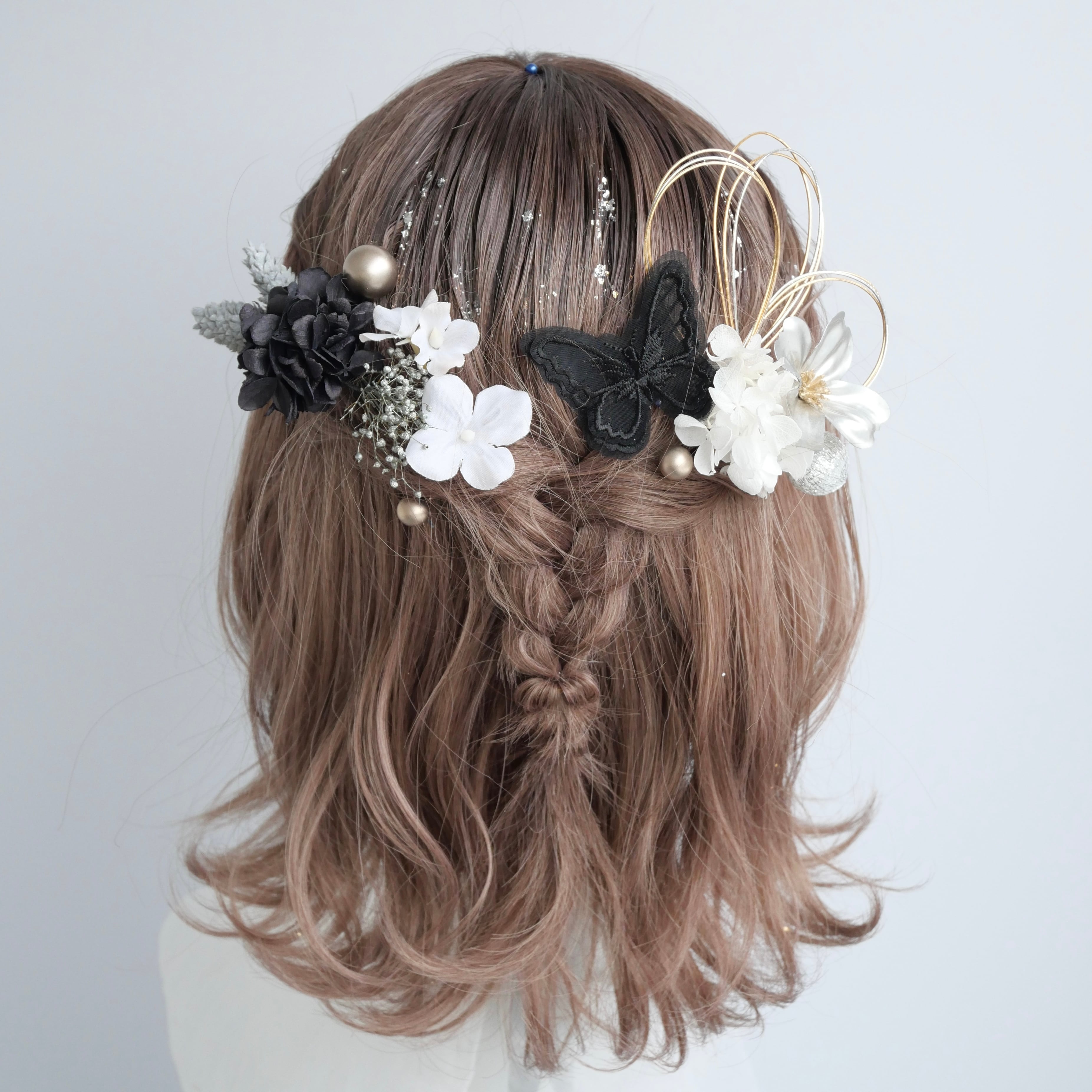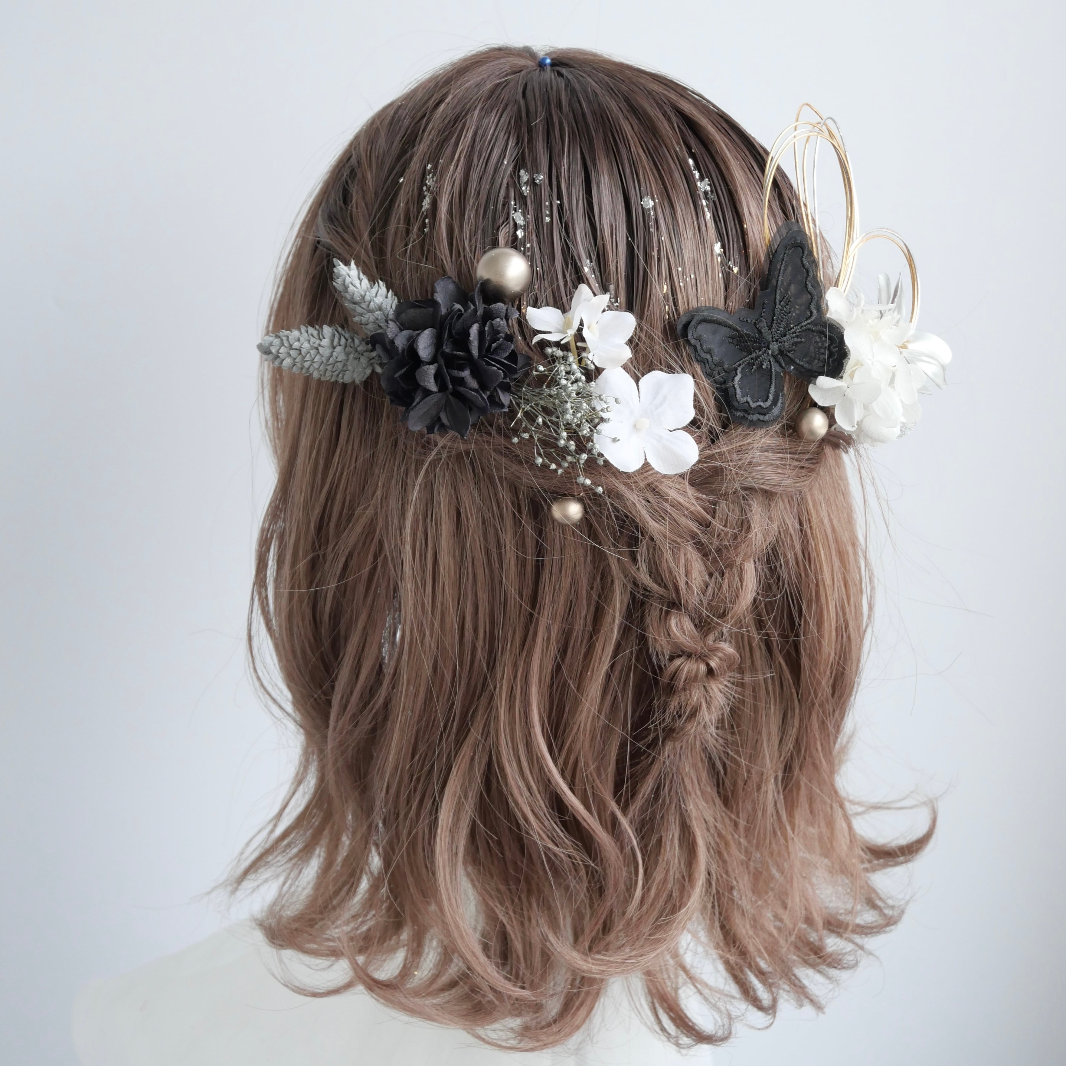 A044 ドライフラワー 髪飾り 黒 卒業式 袴 成人式 振袖 結婚式 和装