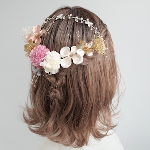A583 ストーンカチューシャ ドライフラワー 髪飾り ピンク 卒業式 袴 成人式 振袖 結婚式 和装
