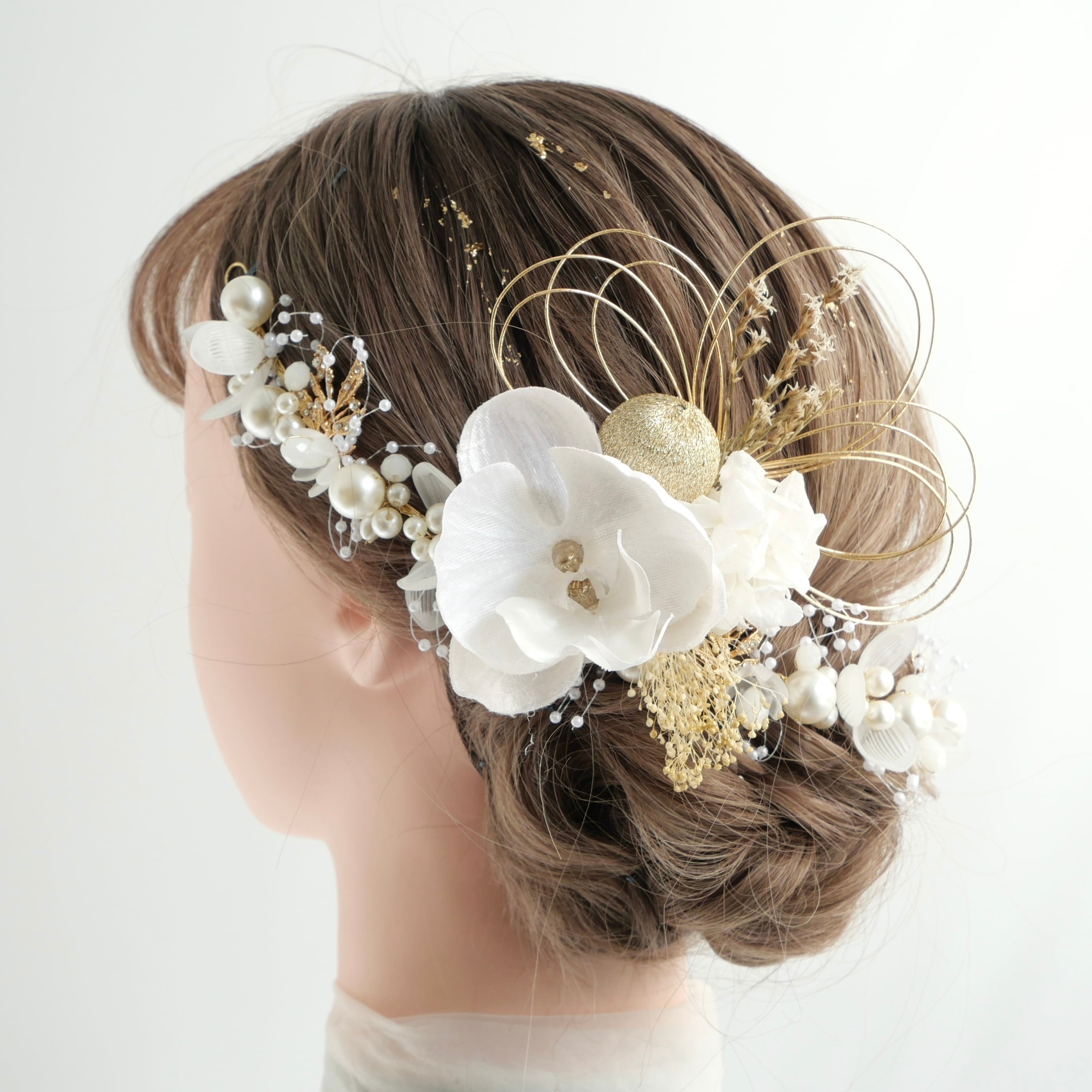 かすみ草 カスミソウ かすみそう 紫陽花 アジサイ ゴールド 白 金箔アレンジ 蝶々髪飾り ラインストーン