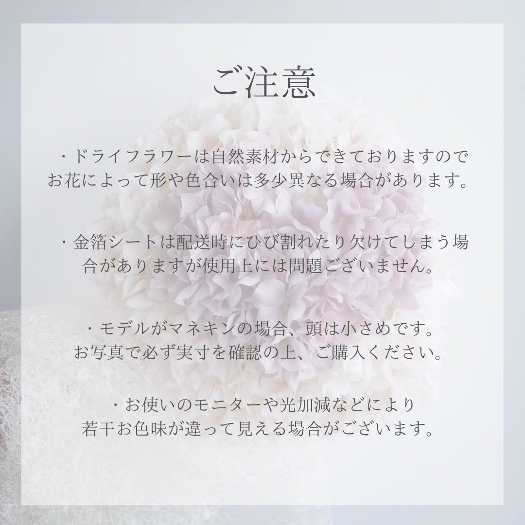 ドライフラワー(プリザーブドフラワー)は一度形が崩れてしまいますと元には戻りませんので、お取り扱いは優しくお願いいたします。