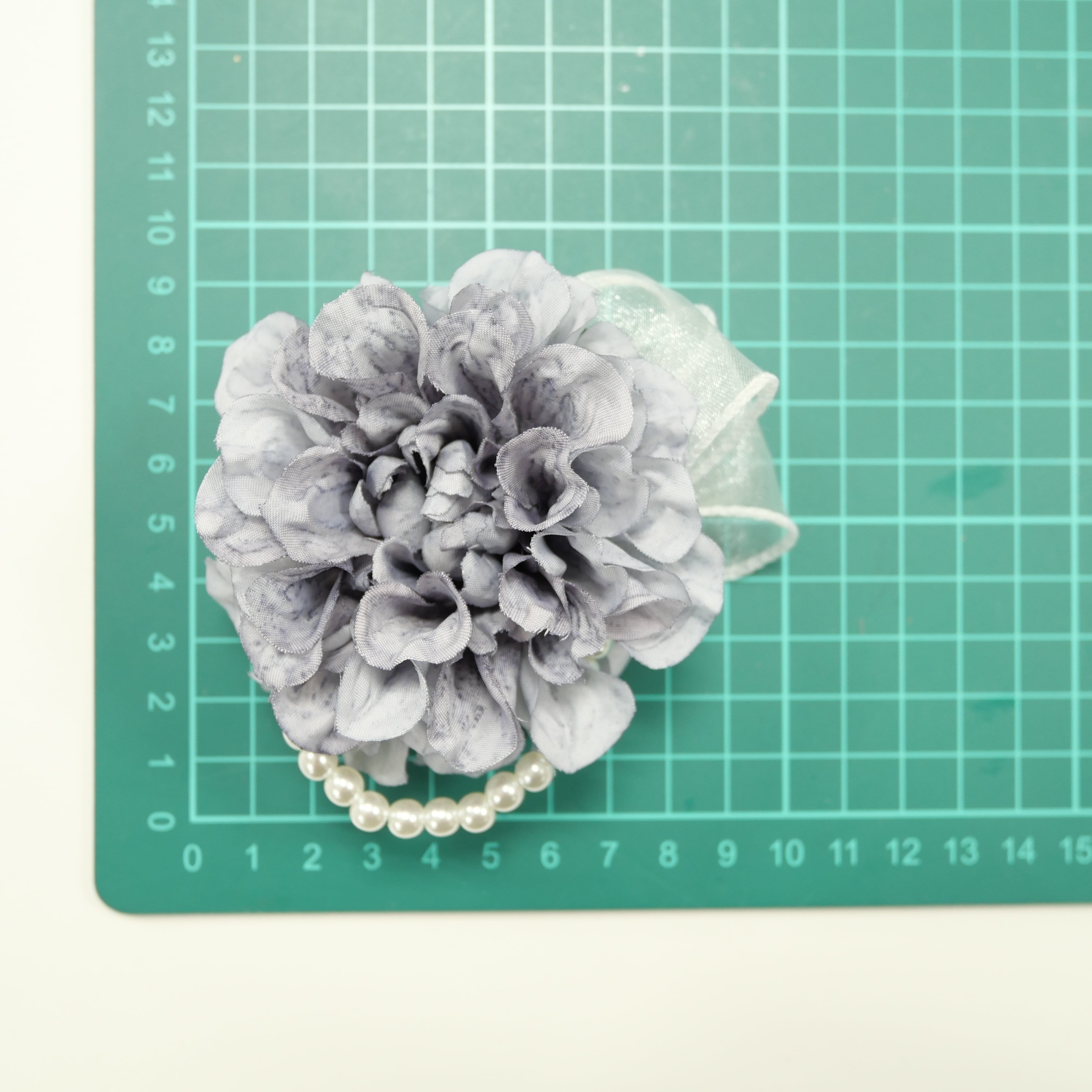 艶めくパールとリボンのコサージュ♡ブルーグレー