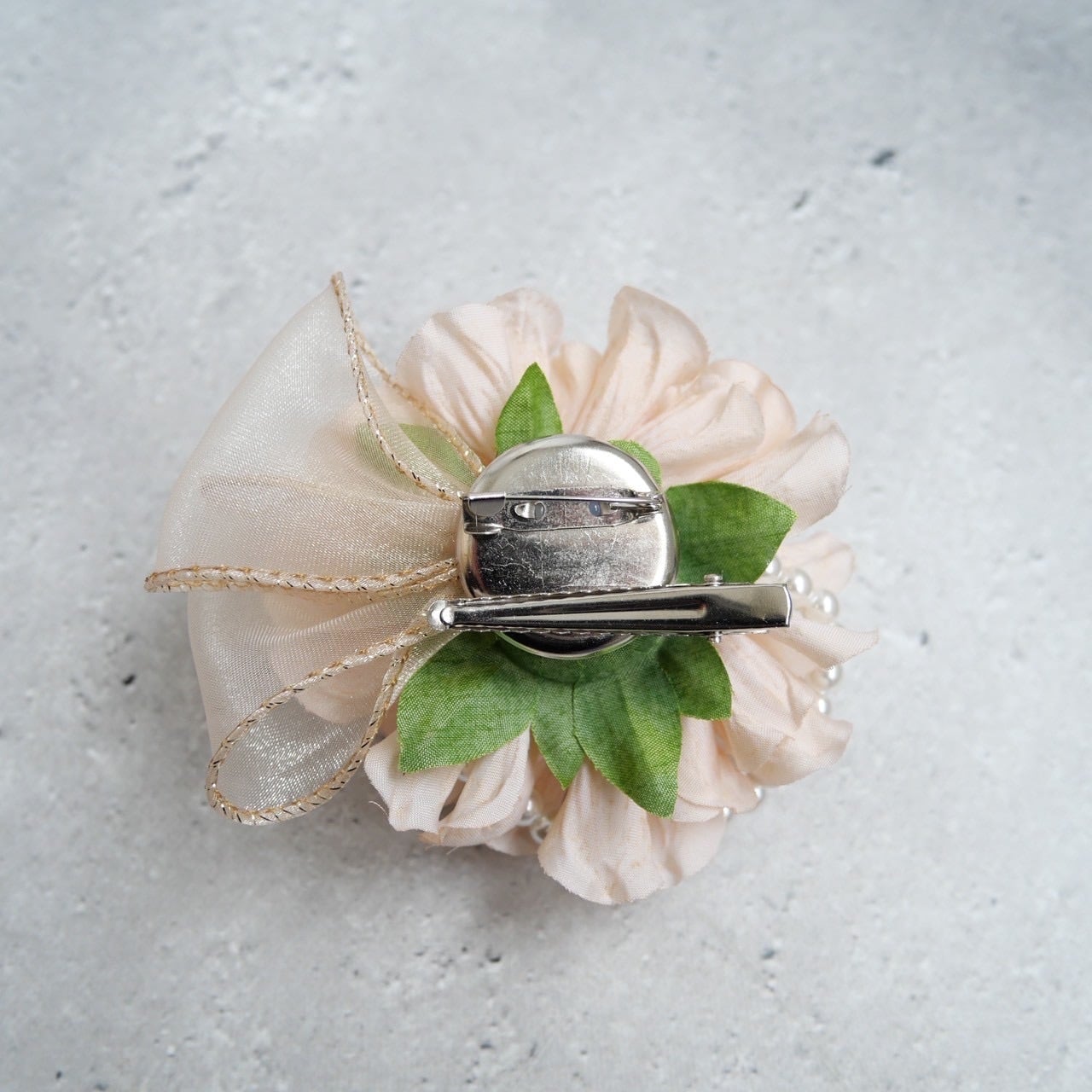 C005 艶めくパールとリボンのコサージュ ピンクベージュ 卒業式 卒園式 入学式 入園式 結婚式