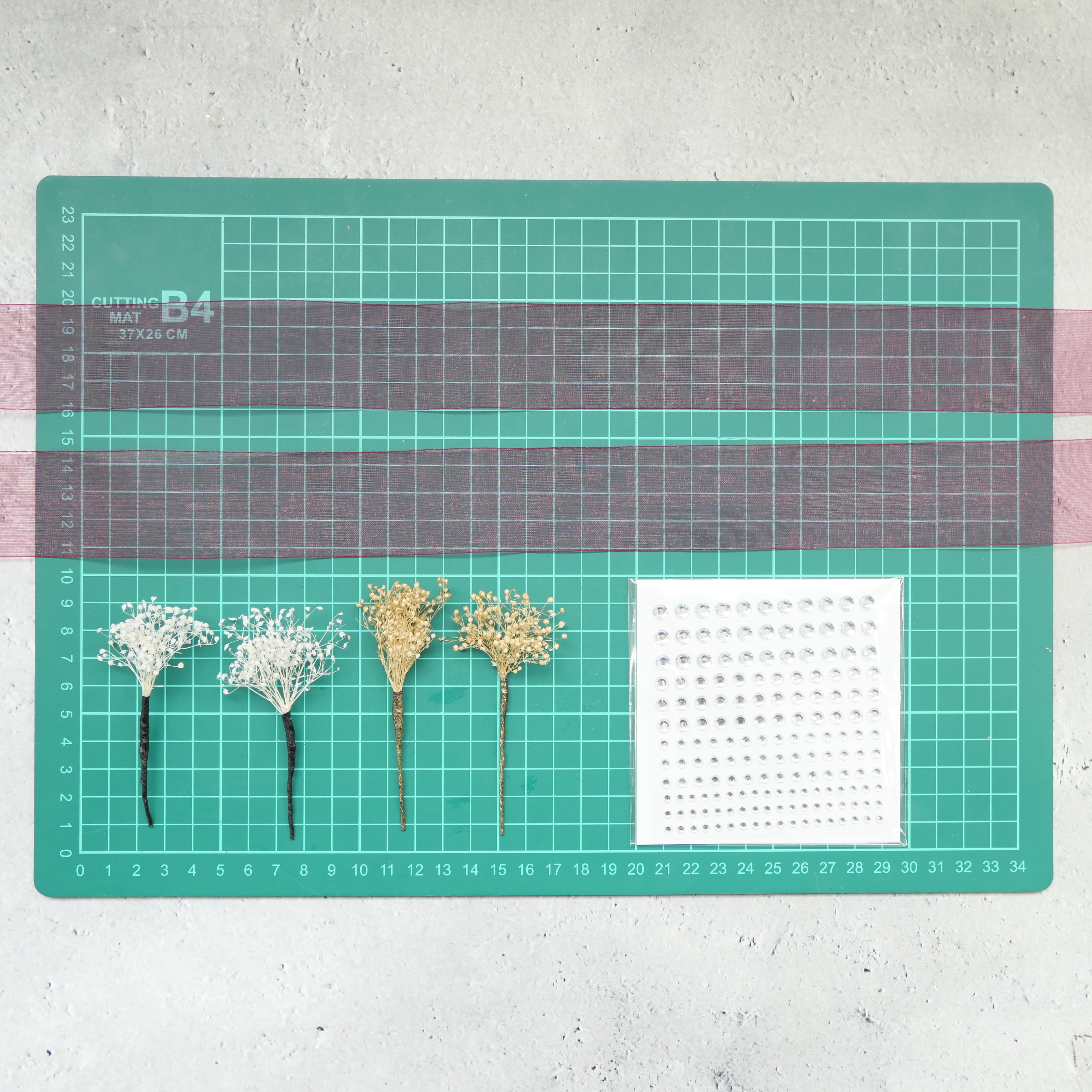 かすみ草、ラインストーンを組み合わせた