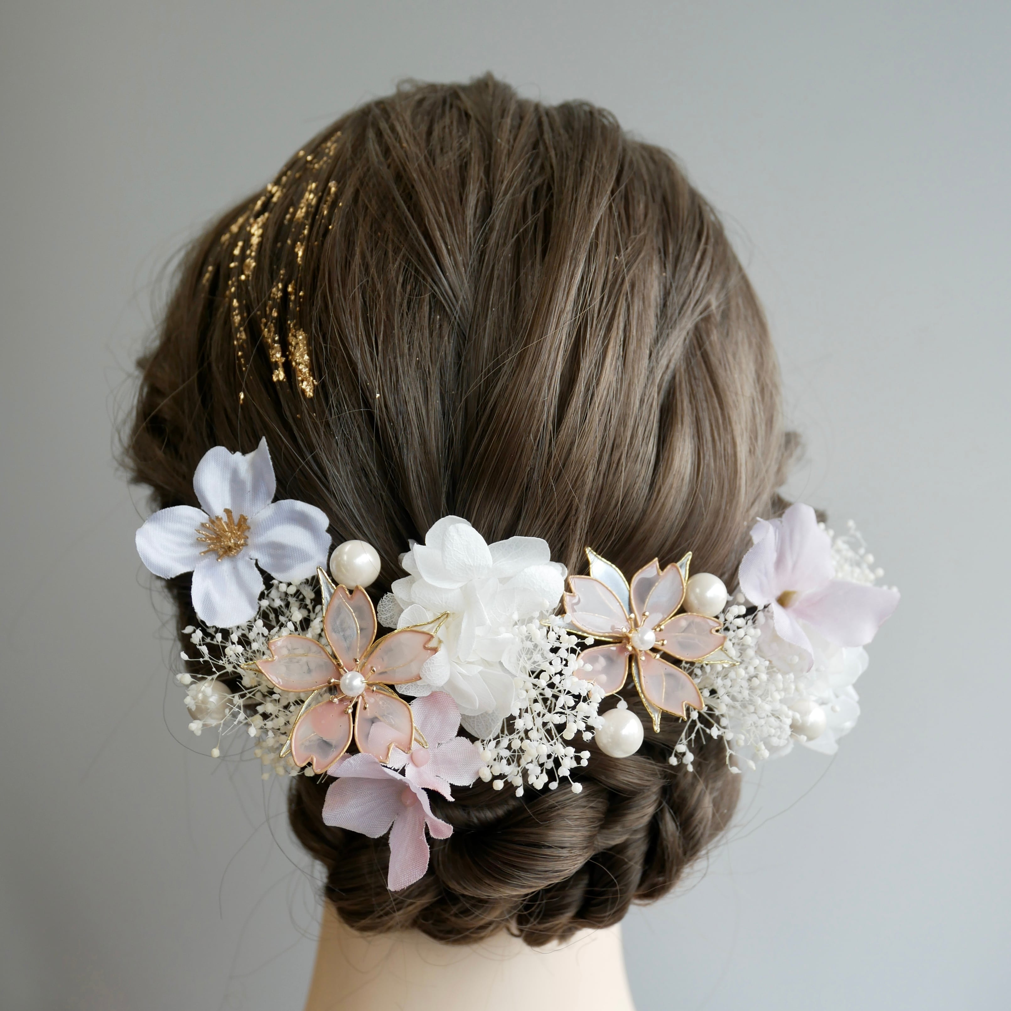 造花 白無垢 成人式 髪飾り 和装 色打掛 振袖 七五三 ヘッドドレス ウェディング 結婚式 和婚 ブライダル ヘッドアクセ ヘッドアクセサリー 花 花嫁 卒業式 謝恩会 発表会 花飾り ブライダル髪飾り ベッドパーツ 着物 枯れない 挙式 前撮り フォトウェディング ドライフラワー アメリカンフラワー