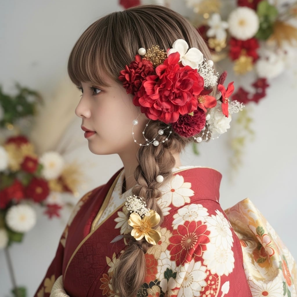 編みおろしやまとめ髪との相性も抜群で、成人式・卒業式・前撮りなど晴れの日にぴったり。