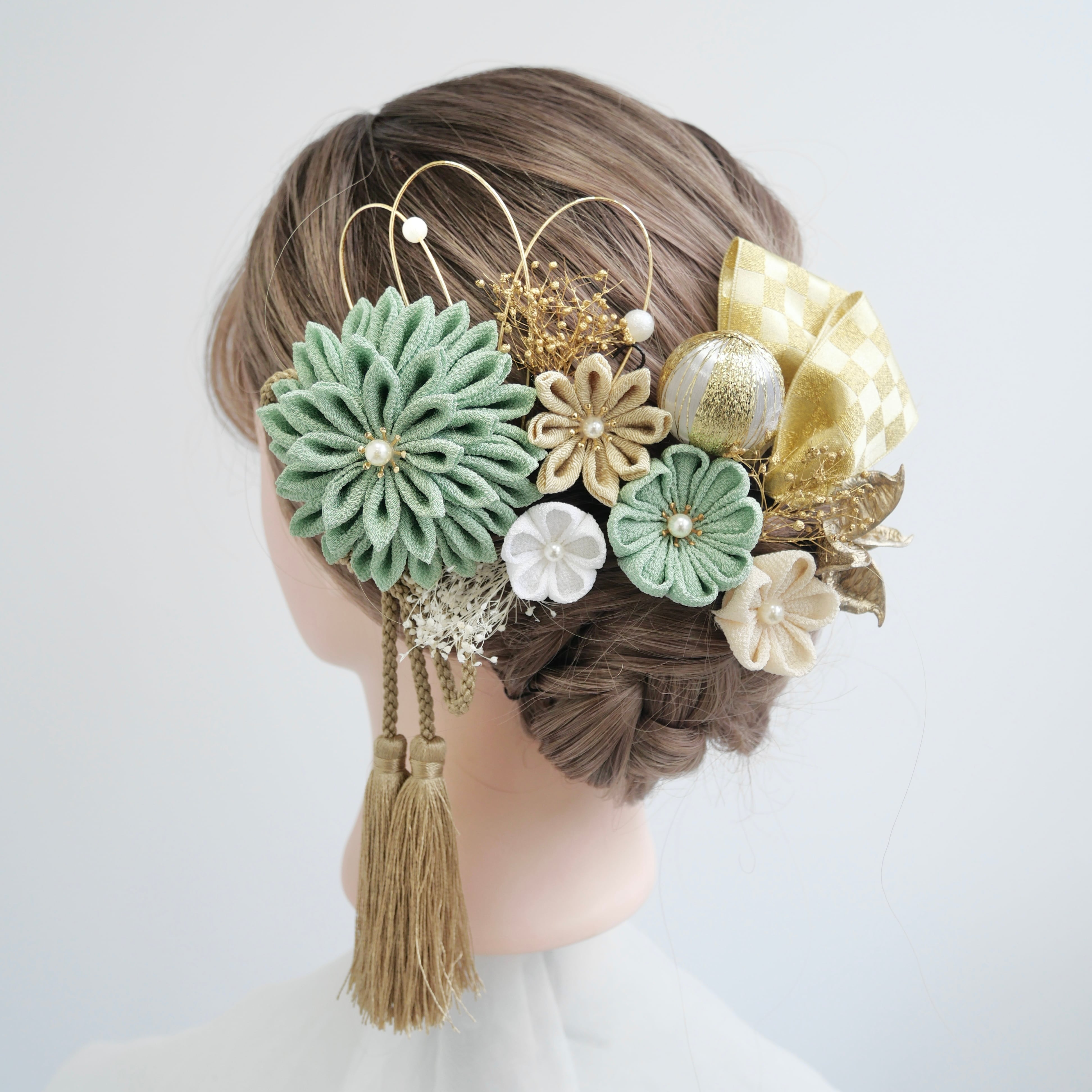 お着物だけではなく、ドレスアップするヘアスタイルにご利用いただけます。