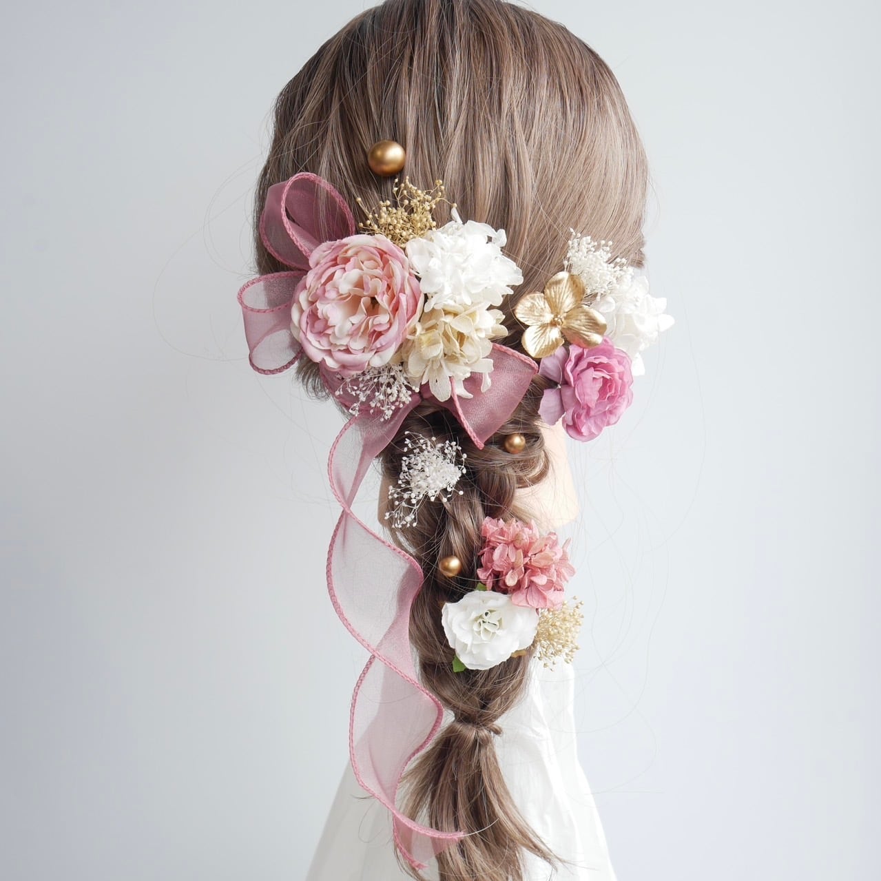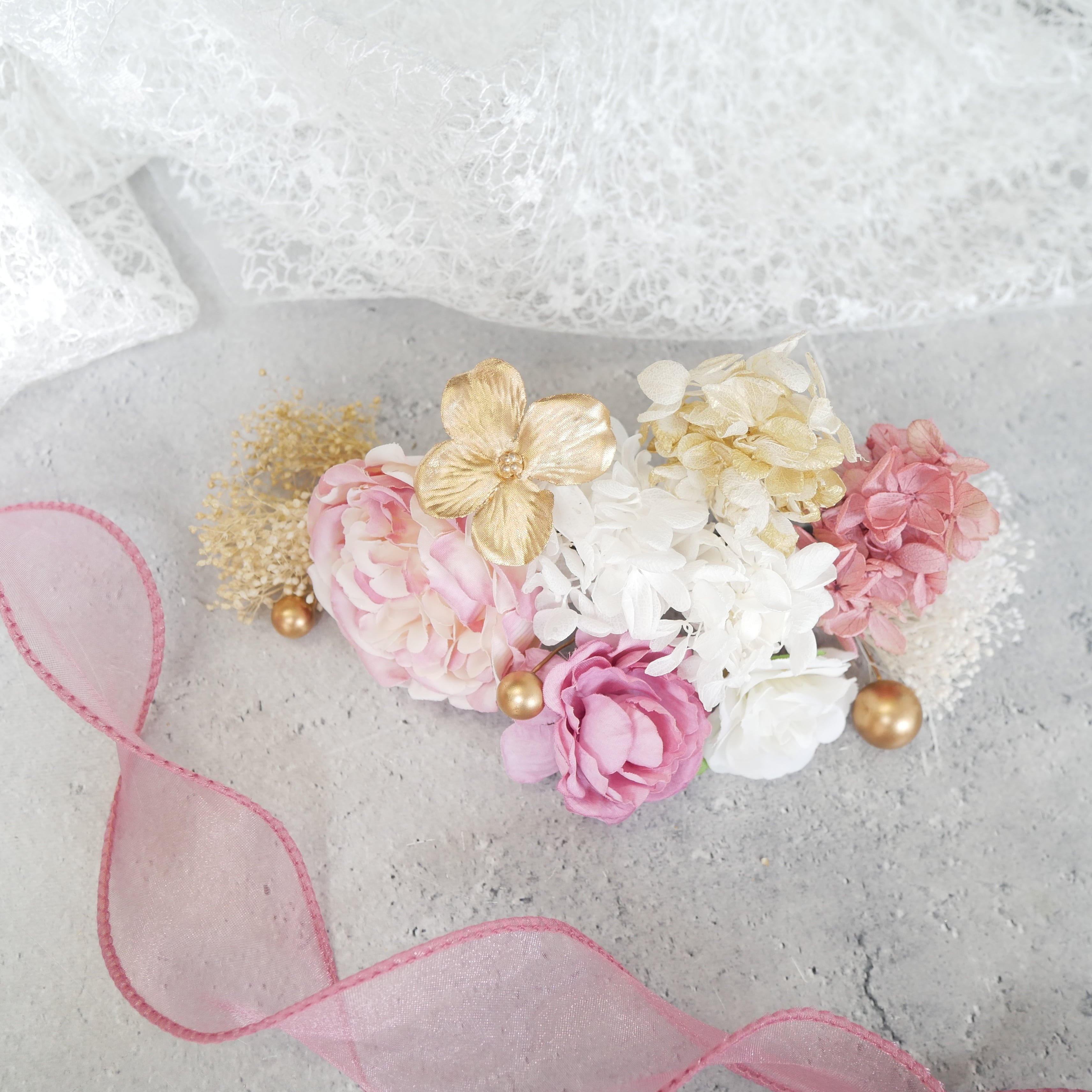 A217 ピンク ローズ ドライフラワー髪飾り リボン 卒業式 袴 成人式 振袖 結婚式