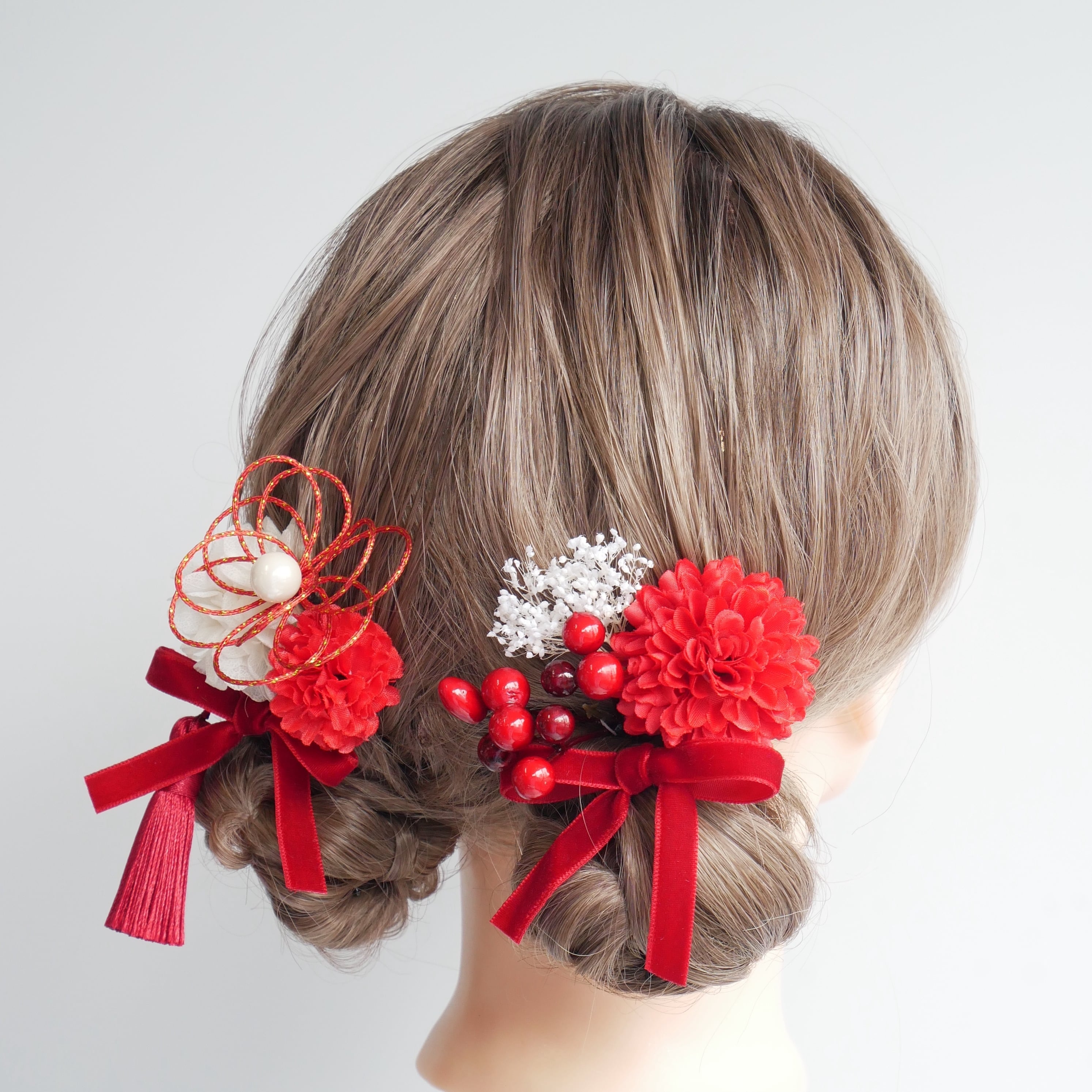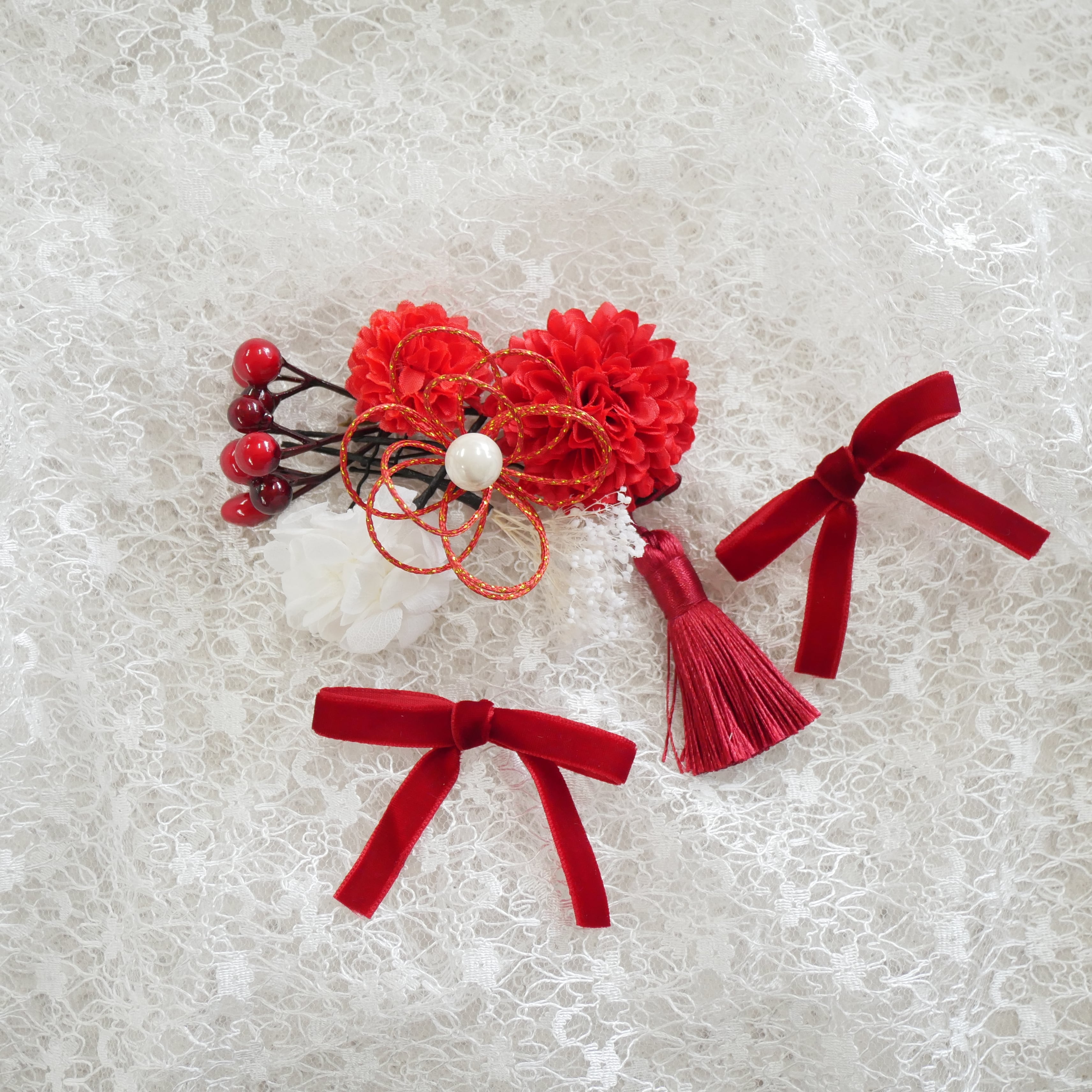 A394 七五三の髪飾り 赤 七五三 ゆかた 成人式 前撮り マム タッセル
