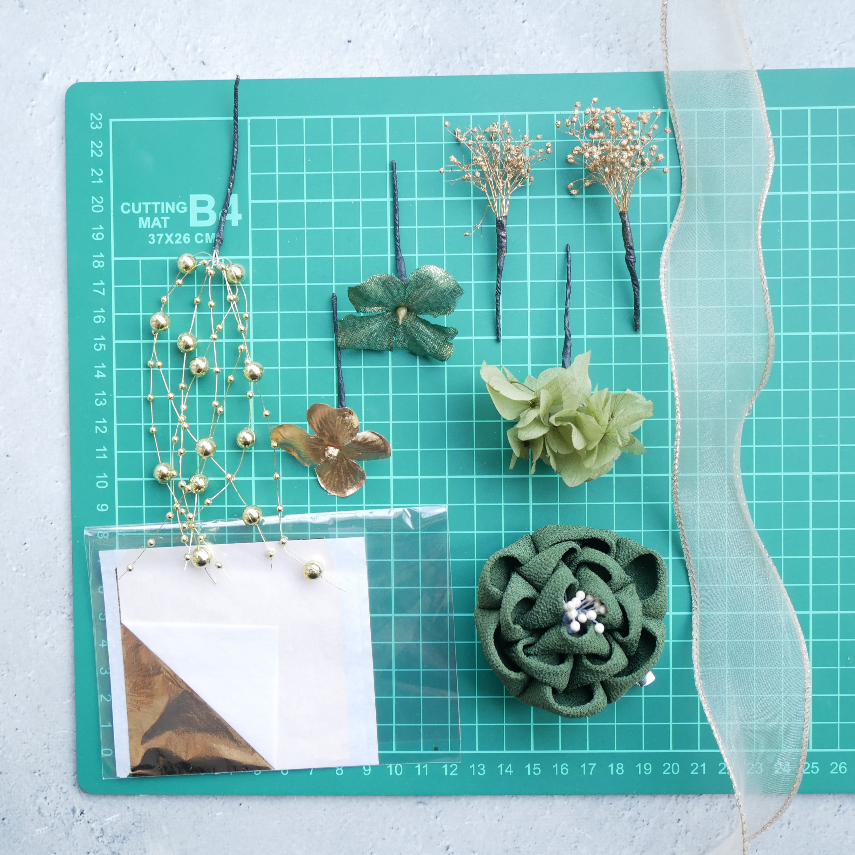 T71 つまみ細工 ドライフラワー 髪飾り 緑 成人式 前撮り 卒業式 結婚式 浴衣