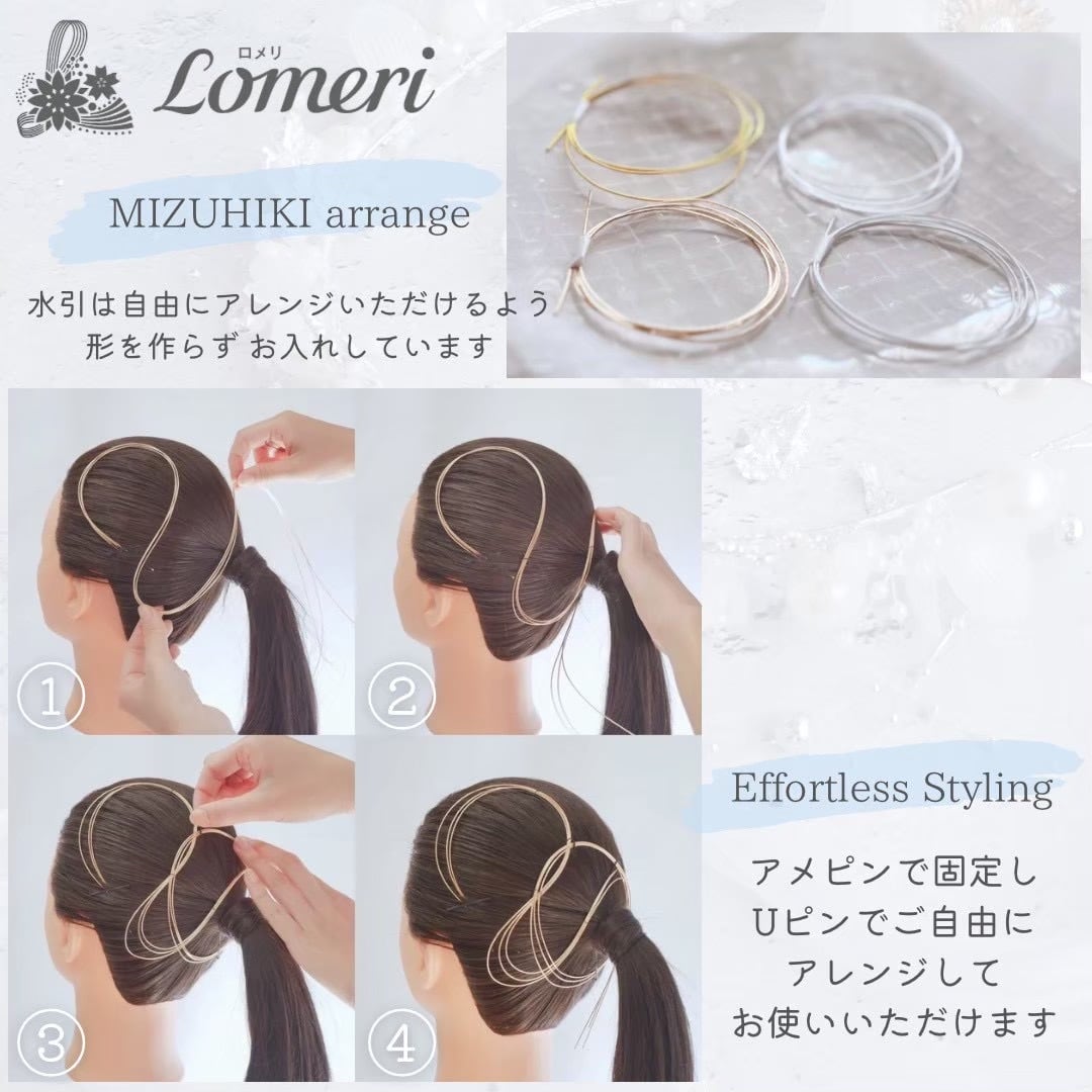 ピック仕様のものは髪から落ちにくいよう粘着質のテープで仕上げております。アメピンなどで補強して止めていただけると安心です。